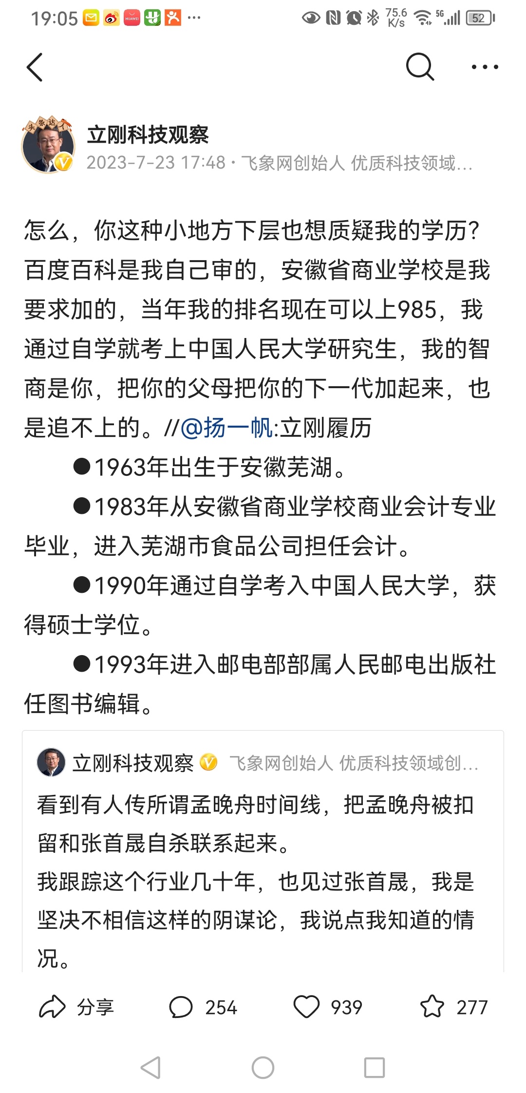 今天在头条上把一个贱货骂删了贴。说一个问题,当然有不同意,反驳也正常。这货暗戳戳的把我百度百科截一段过来,专门突出安徽省商业学校毕业。想用中专毕业贬低我一下。