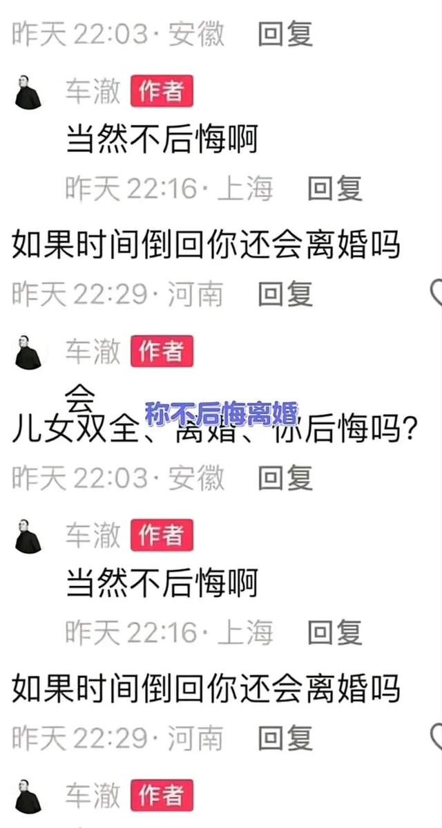 车澈也没当缩头乌龟,他干脆的回应重来还是会离婚,对于离婚这个选择不后悔。