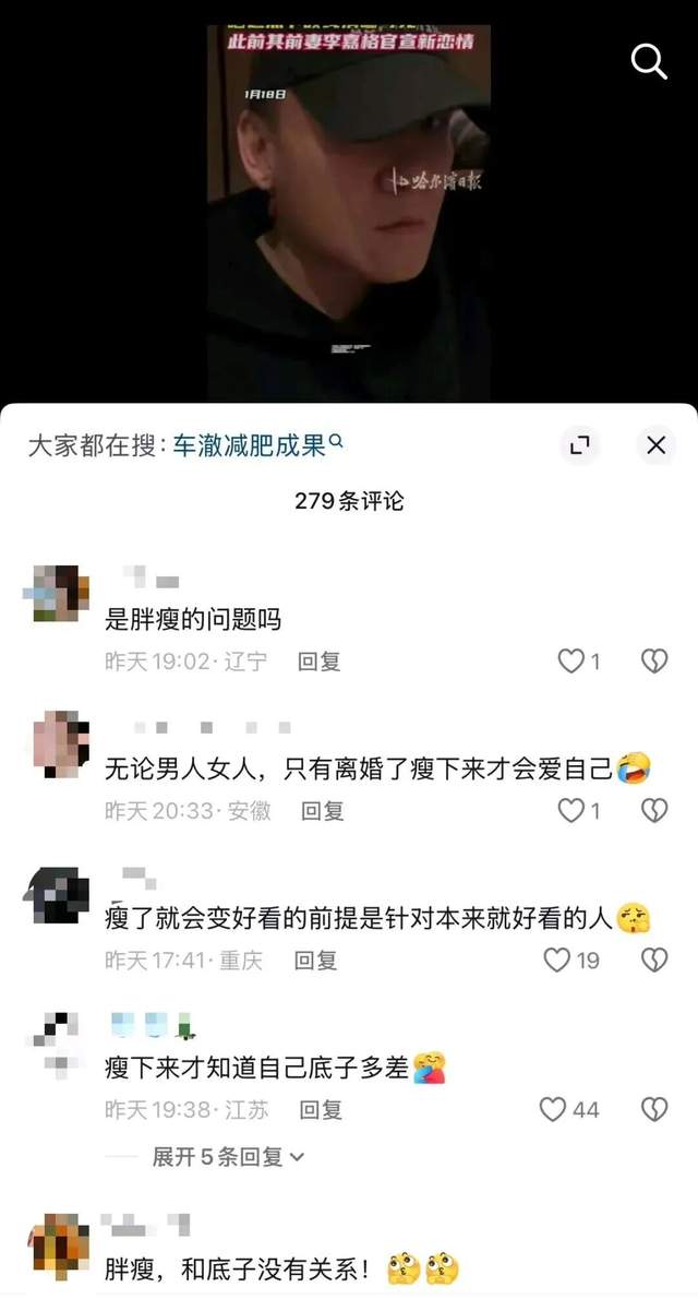 网络上几乎都是这样的评论,别人瘦下来是被夸好帅,好有毅力,好佩服,车澈这里则是完全相反,这大概不是他想看到的结果,不过这也跟他自己的风评有关。