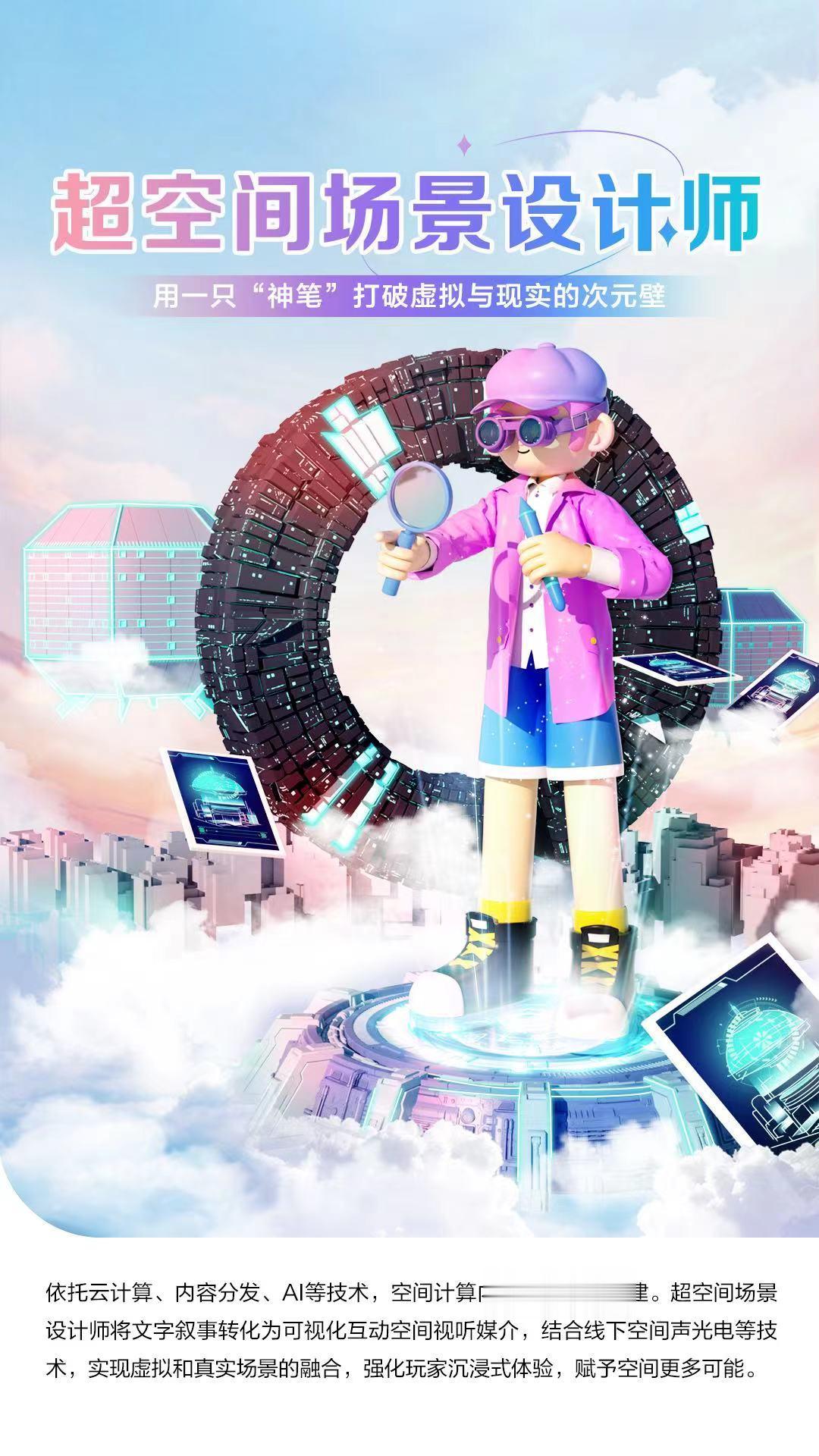 不仅如此,随着人工智能、云计算、物联网、AR/VR、算法、区块链、大模型等创新技术的发展,很多职场“新物种”应运而生。比如,利用3D设计工具和虚拟现实技术,在元宇宙空间中建造独特建筑和景观的元宇宙建筑师;依托云计算、内容分发和AI等技术,创建空间计算内容场的超空间场景设计师;通过模拟真实环境,将算法开发、测试调优都放到云上进行,赋予机器人智能的AI遛狗师等等,新技术的出现也创造出了更多的职业选择机会。