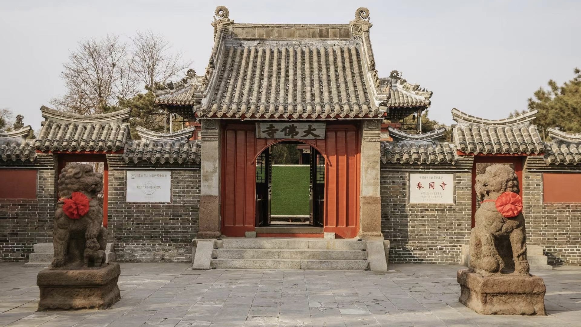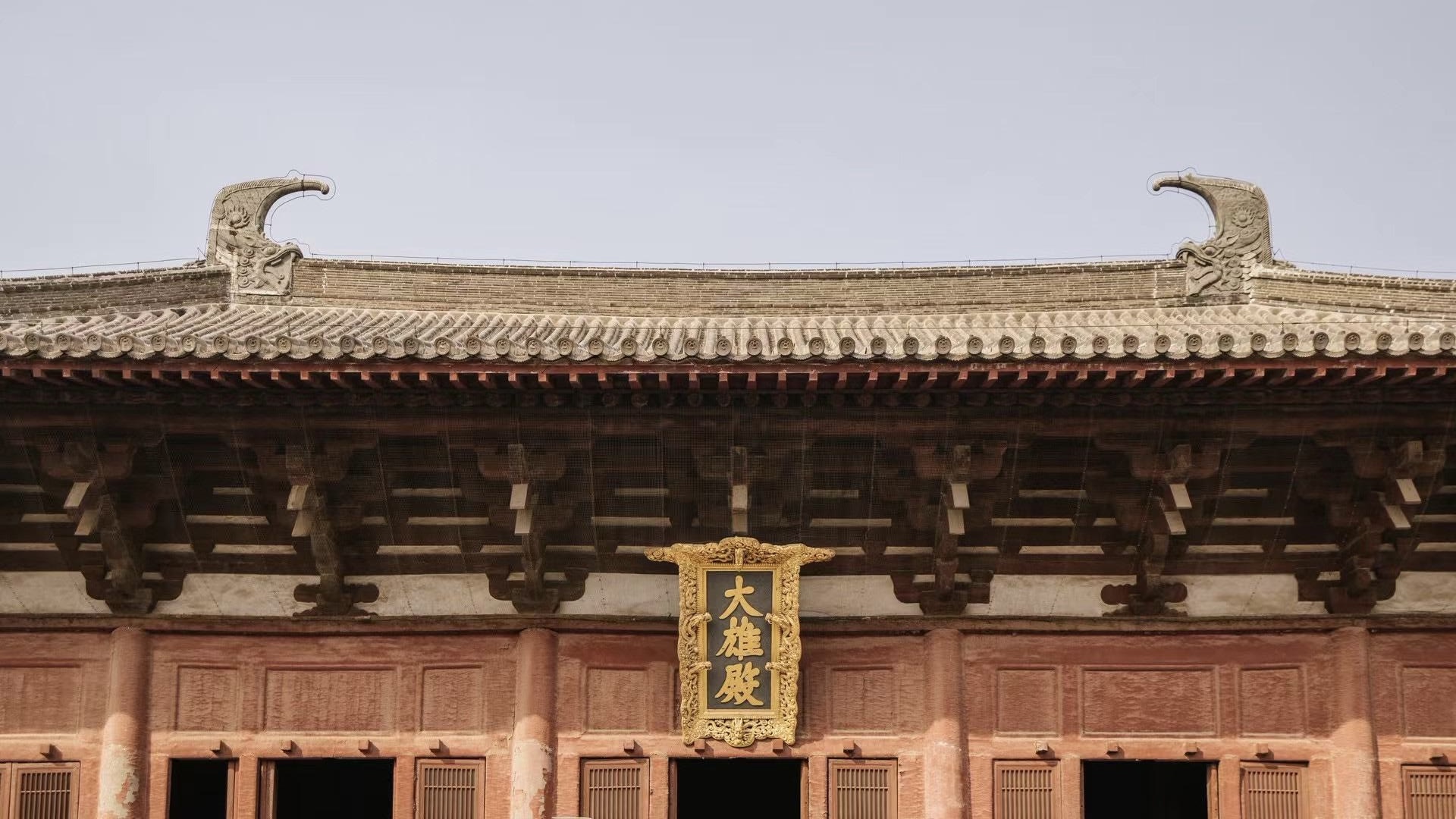 抵达奉国寺时,夕阳正悬在天边,将天空染成淡淡的橘色。寺门古朴厚重,漆色斑驳,像是一位沉默的老者,静静伫立在那里,等待着每一个有缘人的到来。跨过高高的门槛,踩着被岁月磨得光滑的石板路,一步步向大雄殿走去,心中竟生出几分忐忑。