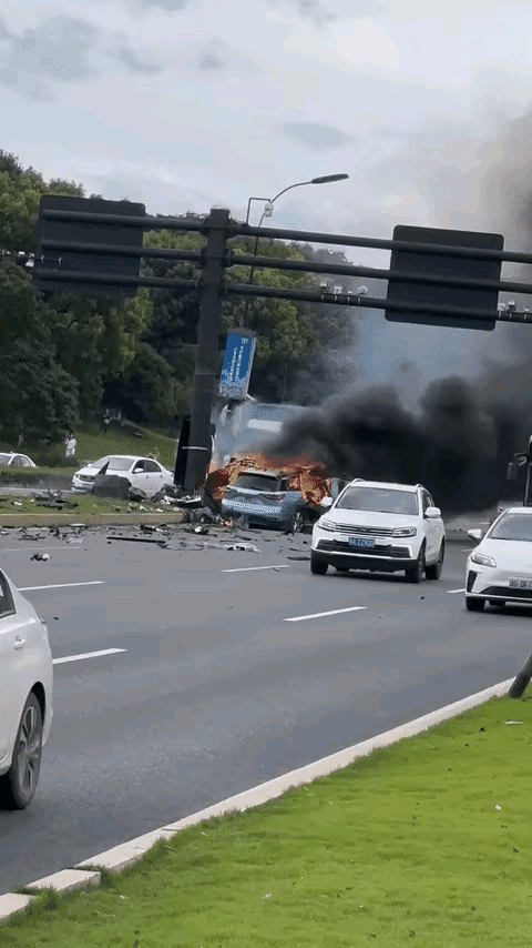 这个速度,电车不能背锅! 如果是油车,就算不起火, 这种速度下撞上去也凶多吉少了
