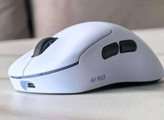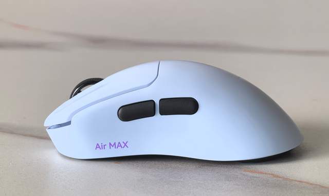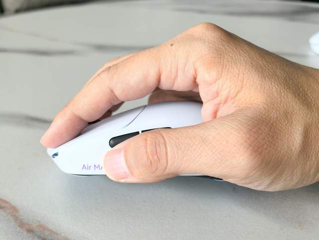 本人手长在17.5cm左右,偏爱抓握,相对来说对重量比较敏感。VT0 Air MAX的主打卖点就是轻量化设计。第一次拿在手里,第一反应是“这也太轻了吧”,用习惯了后再摸别的鼠标,就会在搬砖的感觉了。