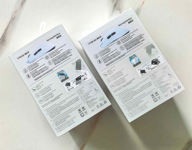 这个重任自然而然的落在了我的身上,我们两个的手都属于中小型的手,并且鼠标的使用方式也不一样,我喜欢的抓握,他喜欢趴握,最后经过各种查阅,入手了雷柏的这两款:VT0 Air MAX和VT3s Air MAX,我还非常贴心的入手了同样的颜色——晨雾蓝,是不是有点基情四射呢?用了一段时间,那么到底感觉怎么样呢?今天给朋友们聊一聊,同时也给正在选鼠标的朋友一点参考。