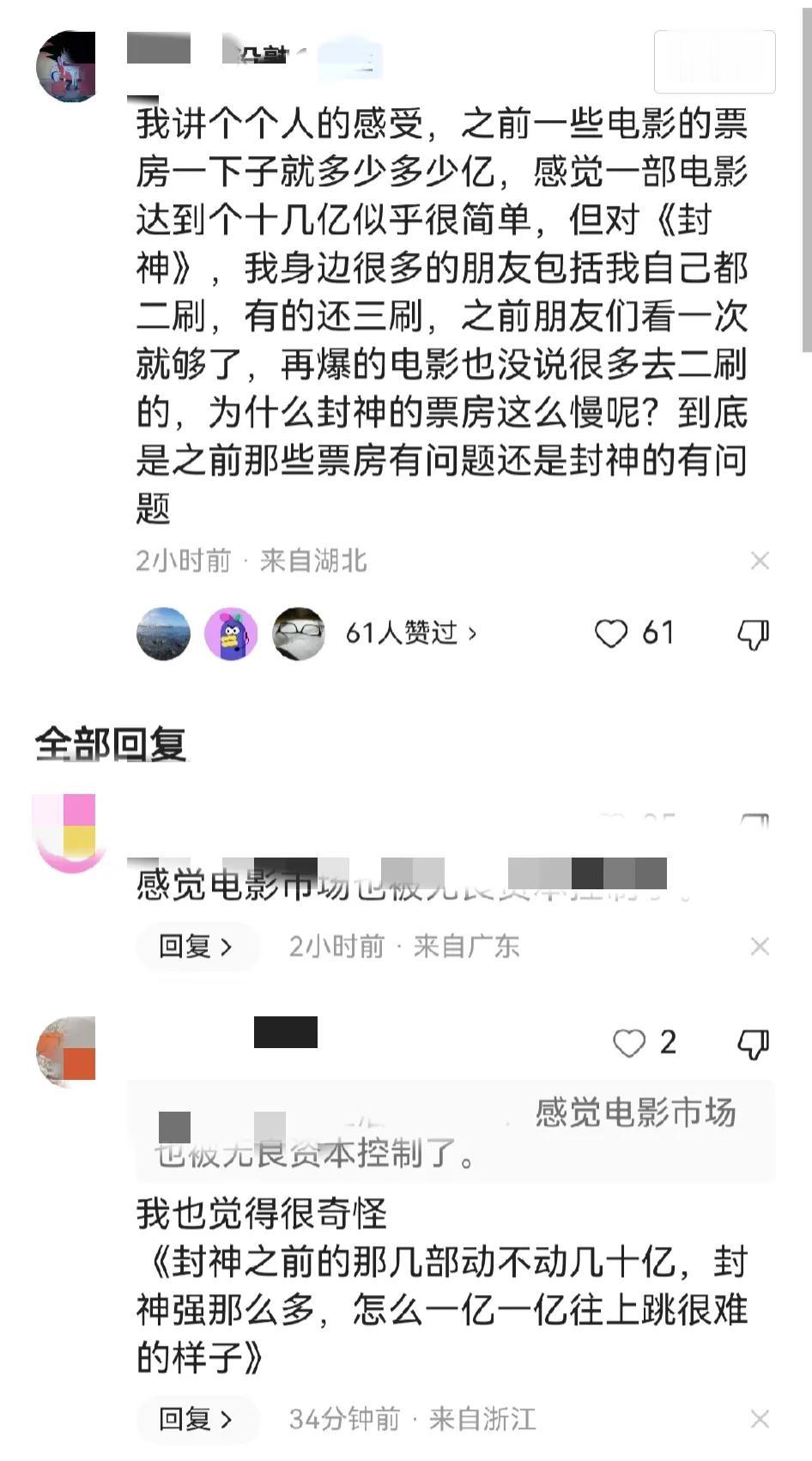 用户10xxx75 1 2023-08-06 21:32 晚上去看个电影,一看超过7成座位坐满了,结果看电影的10个人不到,这种票房全是刷出来的 用户10xxx59 回复 08-06 23:05 如果像封神这样有良心做电影的人都被你说成刷票房,那你就去多看李焕英之类的巨片吧。 用户10xxx75 回复 用户10xxx59 08-07 04:05 你逻辑有问题啊,有良心做电影的和刷票房的人是同一个么?我只是陈述我所见而已,而且我最近看了三部片子都存在同样问题,电影院选座和实际观看人员严重不符。这是电影票房的通病