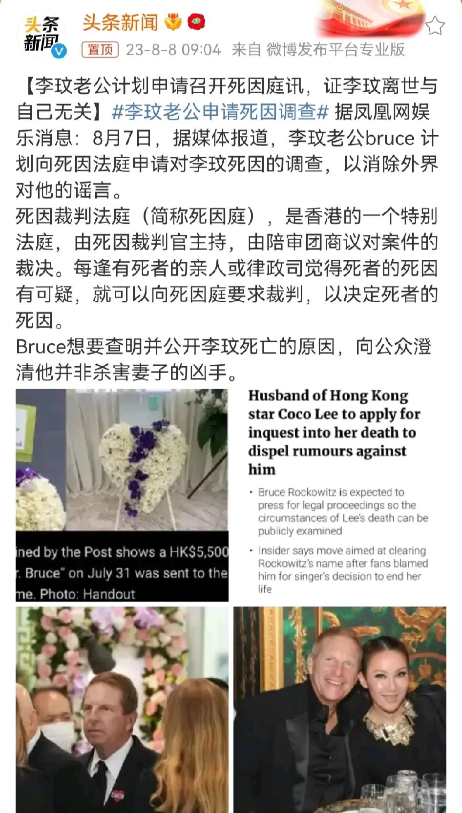 李玟老公有点刚, 因为各种流言蜚语,他计划向死因法庭申请对李玟死因的调查,以消除外界对他的谣言。 网上那么多针对这个家庭的负面消息,当事人根据法律做这样的申请其实也无可厚非,不少李玟粉丝也支持他,至少可以知道更多李玟去世的真相。