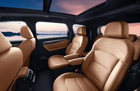 内饰方面,新款豪越L承袭中国星SUV家族设计语言,暖阳棕与月影灰两种内饰配色,均采用高质感材料与精湛工艺打造。中控台配备全新的14.6英寸悬浮式中控屏,搭载Flyme Auto智能座舱系统,为家庭用户打造流畅、智能、互联、生态丰富的智能座舱体验。座椅布局方面,新款豪越L创新推出了5/6/7座三种座椅布局,满足不同家庭的多场景需求。