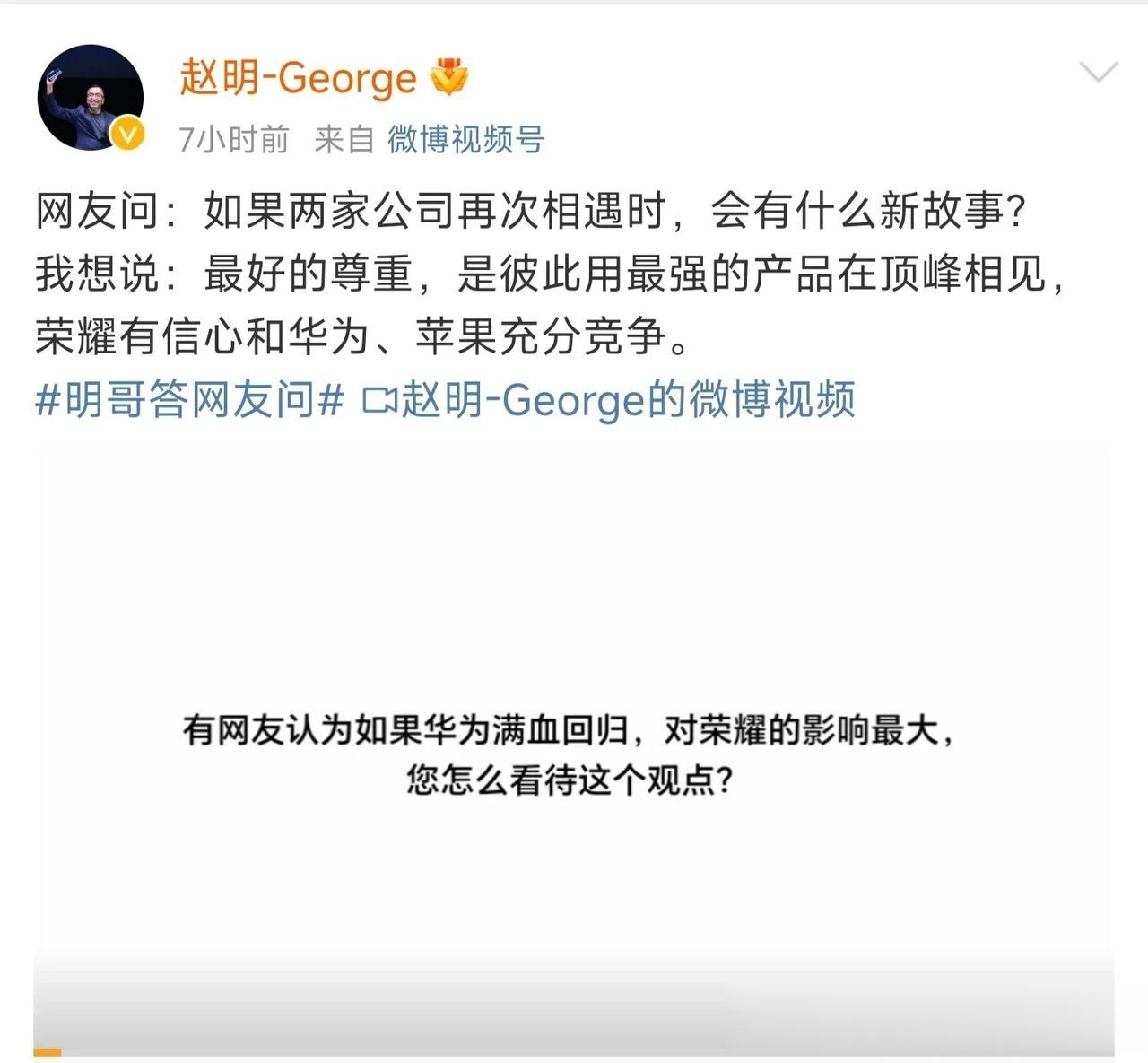 用户15xxx05 2 2023-08-11 10:39 对于华为来说,可以在很短的时间内再造一个荣耀品牌,所以荣耀回不回归意义不大。不是已经传言华为会推出星耀子品牌吗? 池寒枫 回复 08-11 15:13 关键是荣耀可以继续用华为的技术啊 tb6959297_2011 回复 08-12 13:45 星耀的背后你看看是谁,是荣耀,我猜他两是想整个星耀