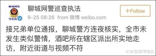 6月25日8时,对于视频较早出现于山东聊城一个酒吧聊天群的线索,@聊城网警巡查执法 回应:经过连夜核实,聊城市未发生类似警情,酒吧所在辖区派出所实地走访,附近街道与视频不符。