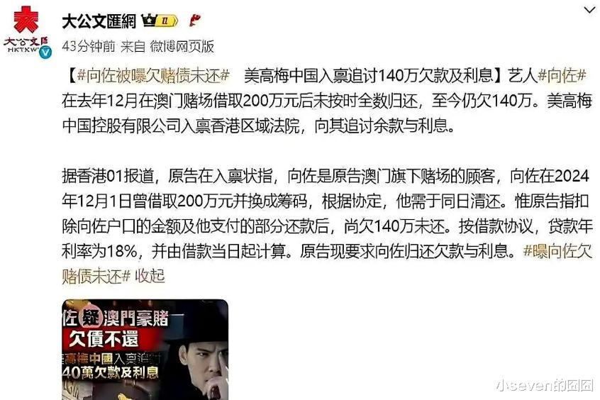 特别在郭碧婷嫁给了向佐之后,关于向家的消息就更是网友关注的重点,有趣的是,去年香港媒体还传出向佐去澳门借200万赌债未还得消息。