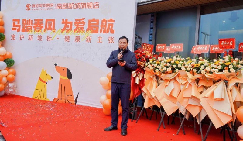 瑞派华东管理公司副总经理李宣宣先生、瑞派南京区域六店总院长周泽生先生、瑞派南部新城旗舰店院长杨文青女士、南京麦都宠医总经理任一斌先生,先后登台致辞。