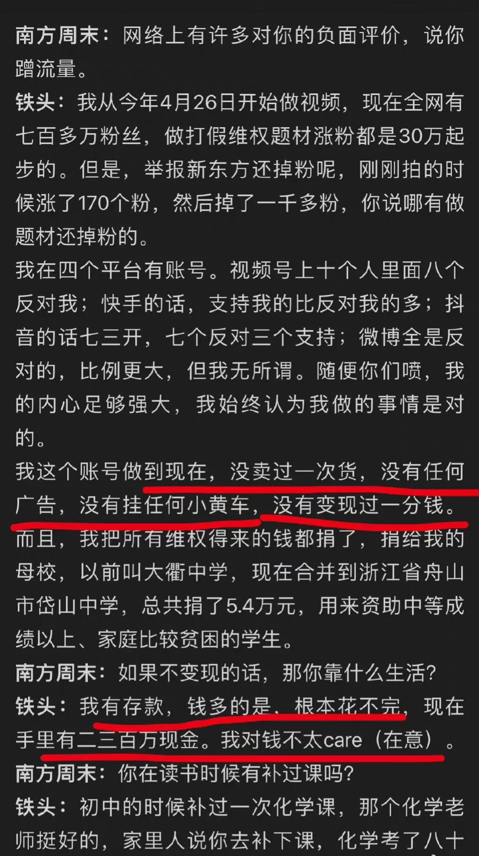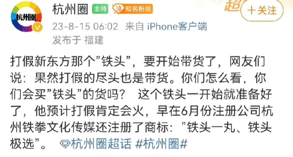 铁头带货被冲, 这么快翻车让人猝不及防! 首播带货被迫中断,评论一边倒,他也想不到自己“惩恶扬善”怎么大家不领情呢? 事实上他已经得罪那么多人还带货赚佣金,怎么想的呢? 辛吉飞起码占个为消费者排雷食品安全的名义,铁头这是掐人家孩子上升进步的渠道,能落着好么? 很多人都看明白了,流量的尽头就是直播带货,蹭流量是真,带货也是真!