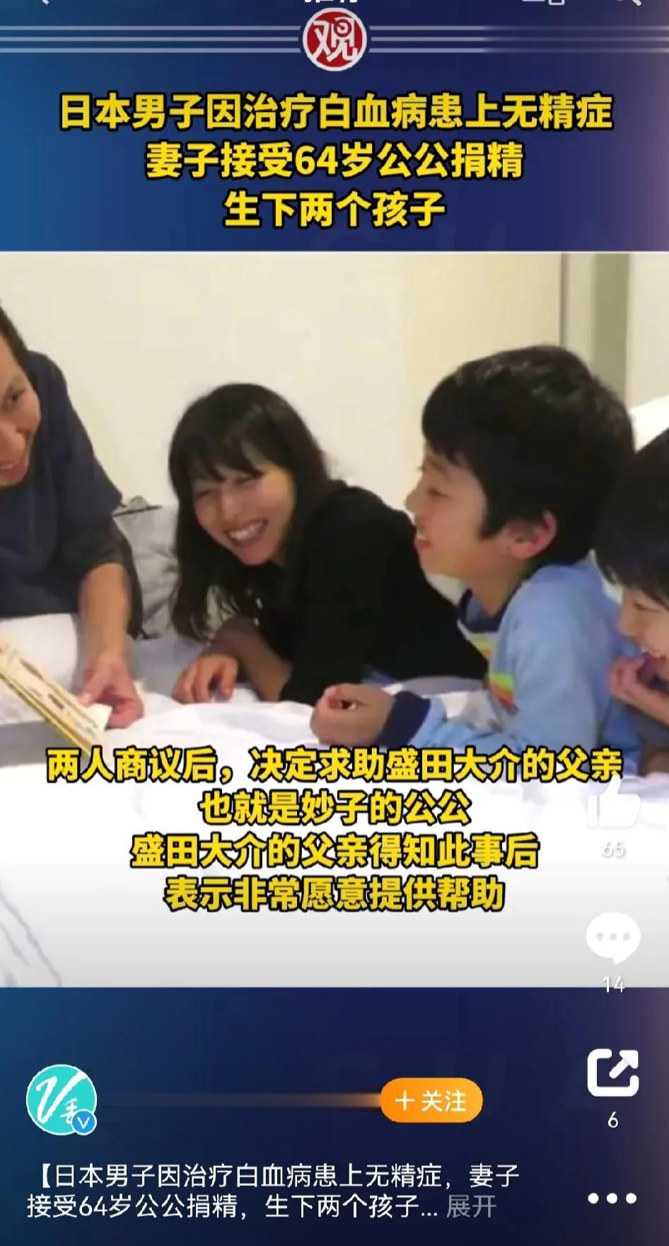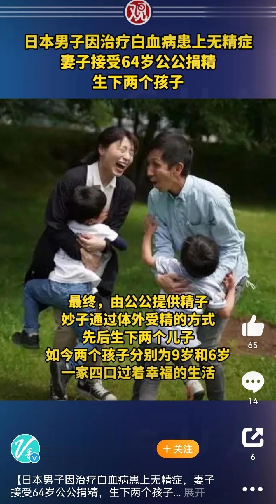 日本一男子没有生育能力,两夫妻向男子的父亲求助,而这位公公得知此事后非常乐意提供帮助,最后媳妇与他体外受精得子,还生下了两个儿子。 这个新闻引起网友的热议,讨论最激烈的是关于辈分的问题,这两孩子如何称呼有血缘关系的爷爷 ? 是叫爷爷还是叫爸爸呢 ?女子的丈夫该怎么称呼媳妇和他爸爸生的孩子?叫弟弟还是儿子?或者各论各的,我叫你们弟弟,你们叫我爸爸 ? 感觉完全乱套了! 男人既是哥哥又是爸爸,爷爷又是爷爷又是爸爸,又是公公,又是儿子的爸爸,又是孙子的爸爸和爷爷,晕了。