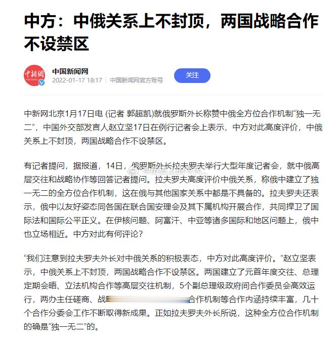 历史上的今天2021年12月24日外交部发言人赵立坚同志表示:中俄合作没有止境,没有禁区,没有上限!上不封顶!2022年外交部秦刚同志答记者问时,补充表示:没有禁区,但有底线!
