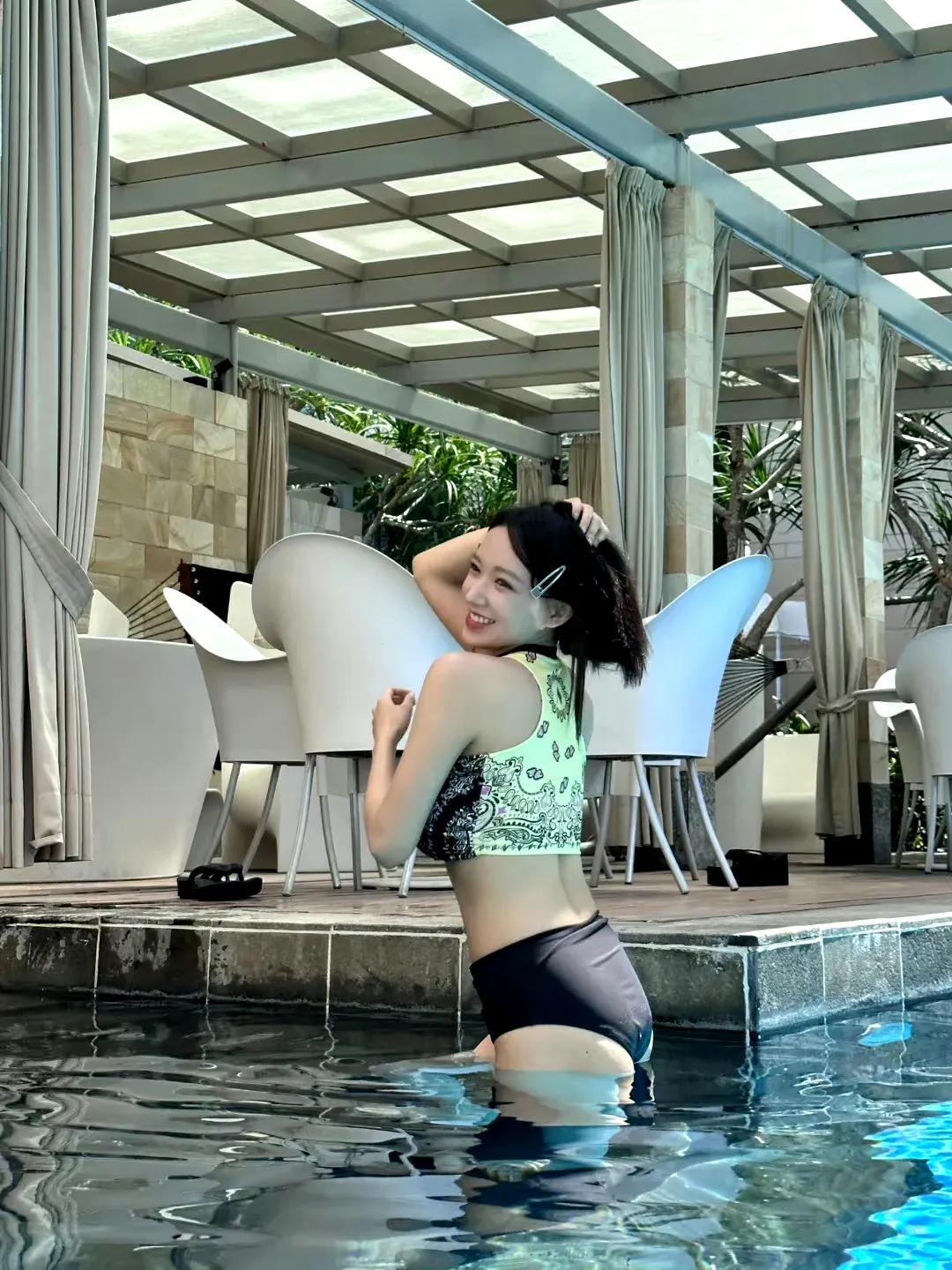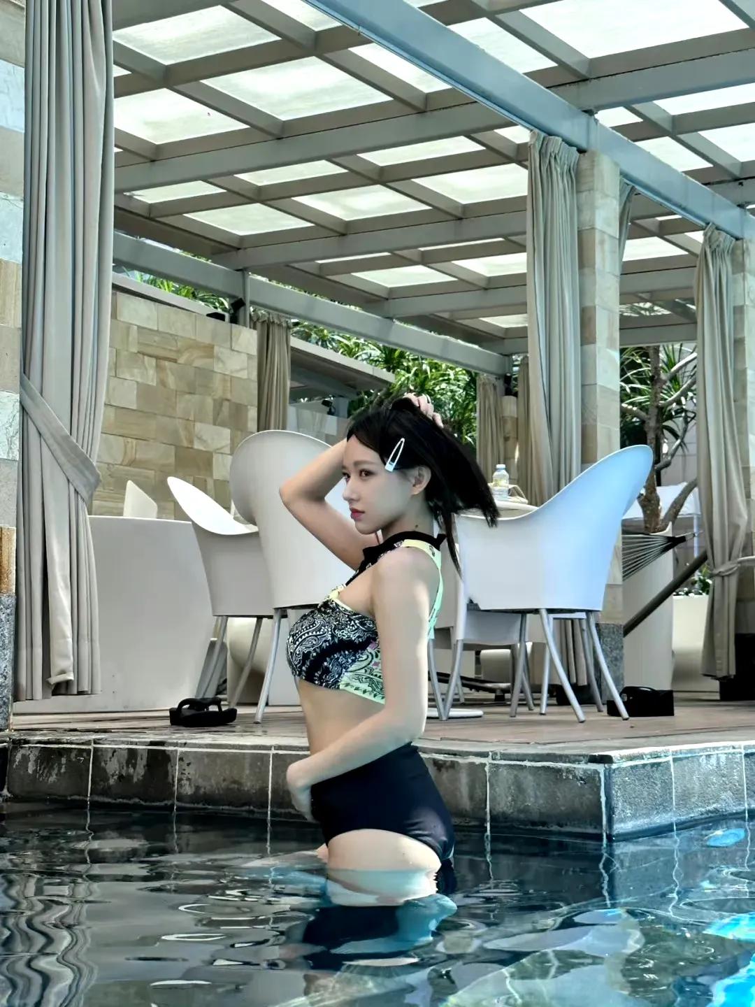 程潇这泳衣好特别, 肉肉的微胖身材, 太有风韵了, 内娱还有谁可以比啊?