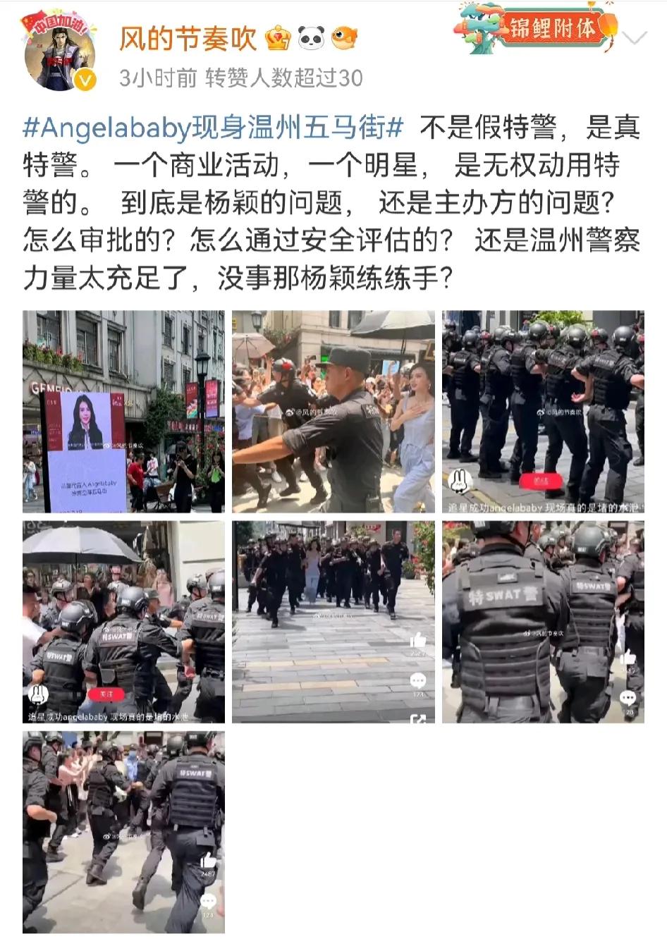 杨颖出行,特警开道 ? 人气女神又引发热议! 这些都是保安吧,活动现场这么多人确实需要这些安保维持秩序,只能说Angelababy的人气太旺了,我记得温州的老乡不都是做生意不追星的吗?[捂脸]