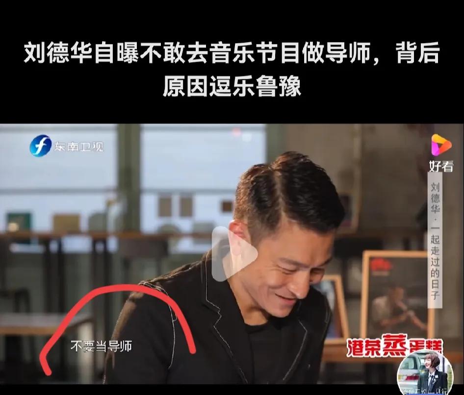 华少曾经问张学友: “有机会您会不会出现在某个节目中,以导师的身份出现?” 张学友回答: “当我真的能指导人家的时候,可能吧!” 因为张学友认为自己没资格当导师,自己没有正统音乐学院的背景,他不知道如何教人唱歌,担任导师的工作对他来说十分困难。 同样,鲁豫有次采访刘德华,问他有没有人请他去当导师? 刘德华说有,但他不敢去,那些导师可以讲出来哪个音阶有问题,他听不出来,没话讲,他还是好好当个歌手好了!不要当导师。 知人者智,自知者明。做不到知人,起码要自知。两位四大天王这是一种自知,但也是一种谦逊。 其实他们这倒是实话,比如音准,走音不严重的普通人真听不出来,专业作曲人一听就能听出来,比如刘欢,周杰伦,汪峰,还有那些作曲家。 不过有网友认为张学友,刘德华情商真高,骂人不带脏字,就像华哥笑的那么开心,不是在笑自己而是笑那些当演员做导师的实际却没才的某些老师。 人生难得敢说自己不敢的,那些所谓的导师真的就是导师吗?不见得,只是像他这样敢于直面自己的真的很少。 你怎么看呢?