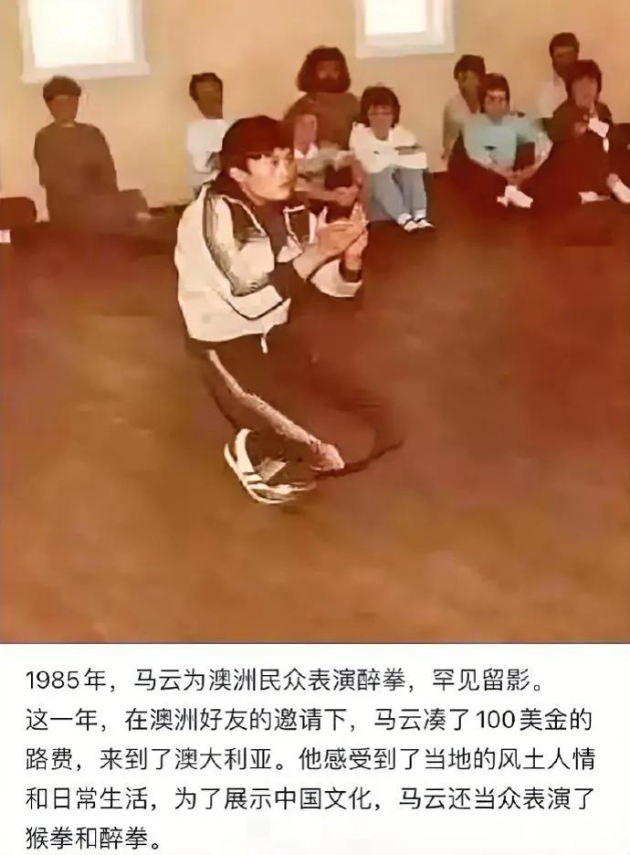 万万没想到, 马云是有真功夫的! 看来他在电影中打败吴京,李连杰等众多武林高手,并不是吹的。 马云1985年才21岁啊,就能凑100美金去澳洲。想一想1985年你家是什么生活条件?那时候结婚,一辆自行车,一台缝纫机,一块手表,还有些七七八八的东西,总共200多块钱人民币就够了,那时候的木工,泥瓦工一天就几块钱。