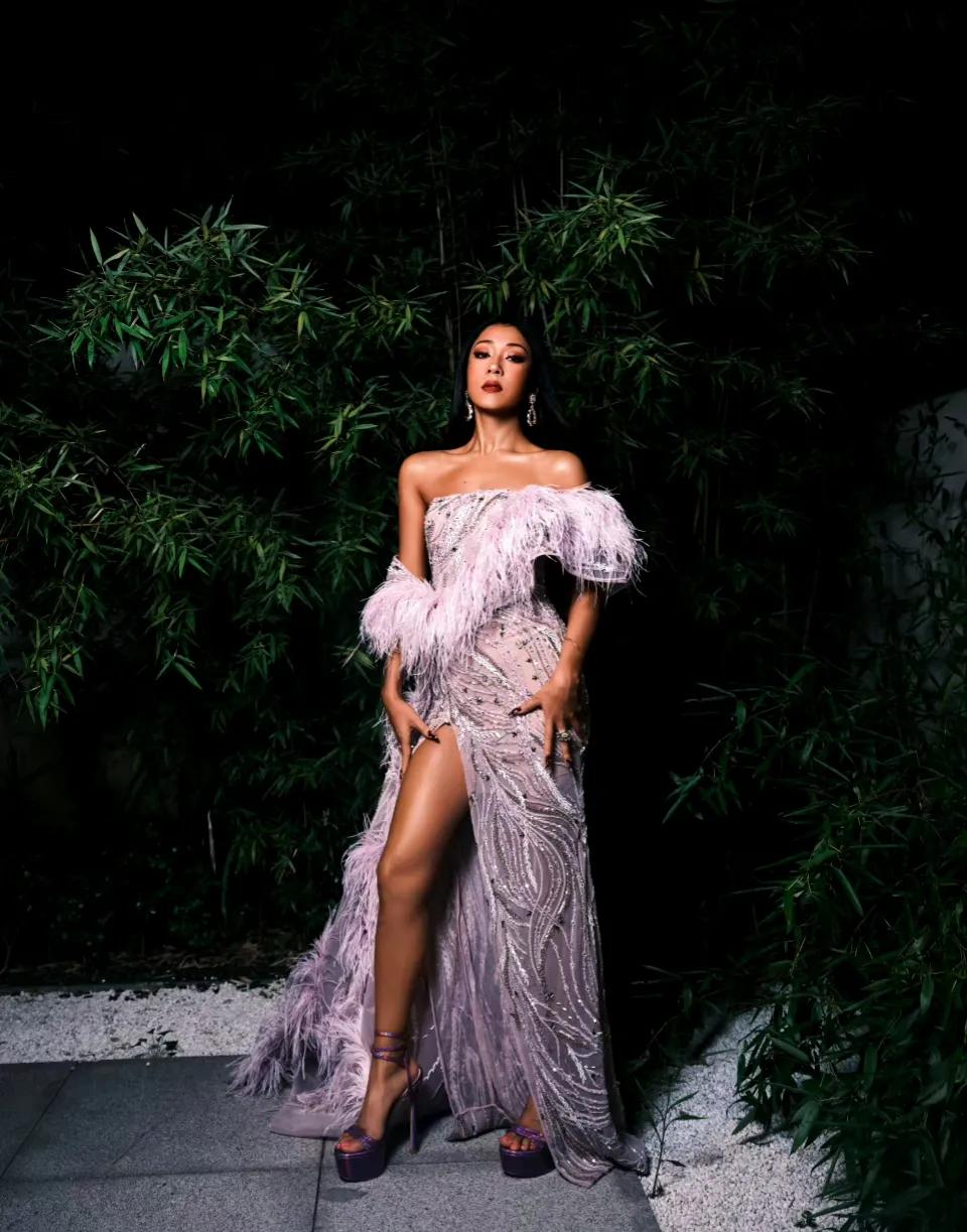 “内裤都快露出来了!” “快要走光了!” 七夕晚会,吉克隽逸礼服因为开叉太高,引起争议! 这次晚会吉克隽逸一身紫色羽毛开叉长裙亮相,说实话非常惊艳,而且吉克隽逸的身材管理真的非常到位,身材比例也超绝!但是还是有比较严格的网友吐槽她的造型,认为这件礼服什么都好,就是开叉太高了, 不美观,哪怕开叉再低两三公分就完美了! 你怎么看呢?