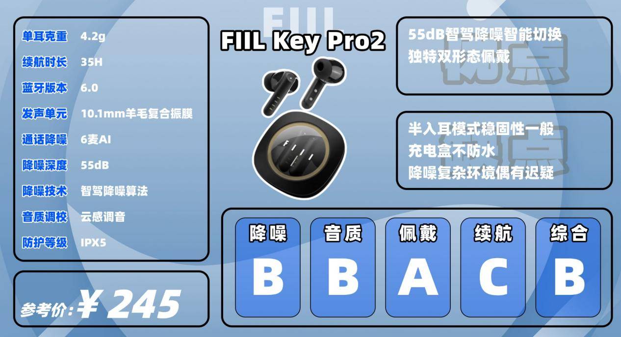 Key Pro2最大的特色是可切换式耳帽设计,能在入耳和半入耳之间自由切换。前者隔音更强,后者佩戴更轻松,还配有“云感调音”来补偿音质变化。整体佩戴舒适度较好,但在剧烈运动时稳固性略逊于纯入耳式。续航方面,总续航约35小时,支持快充,日常通勤完全够用。蓝牙6.0连接稳定,延迟控制得不错。值得注意的是,半透明充电盒外观有设计感,但不具防水功能,使用时需多加注意。