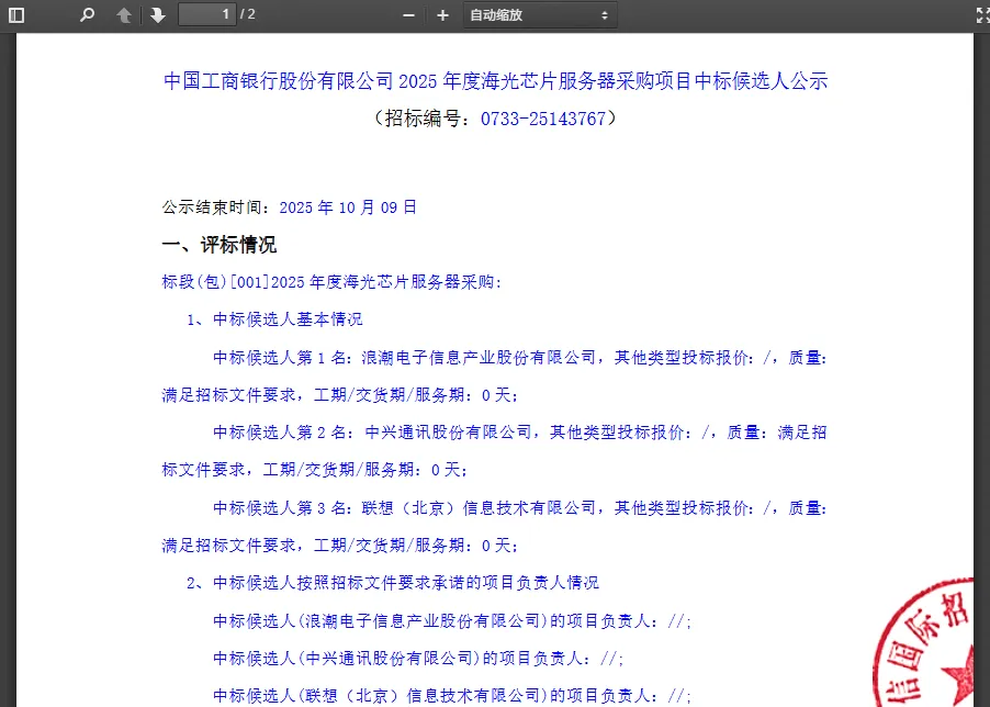 国庆假期第一天,工商银行年度信创订单终于落锤——高达30亿的海光芯片服务器采购项目进入公示,标志着国产芯片在金融关键领域的应用取得了重大突破,为国庆献上一份科技厚礼。