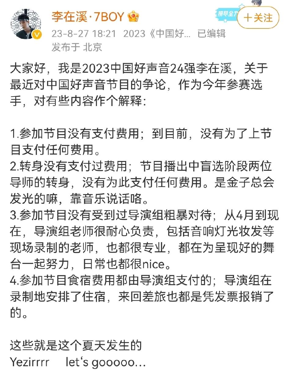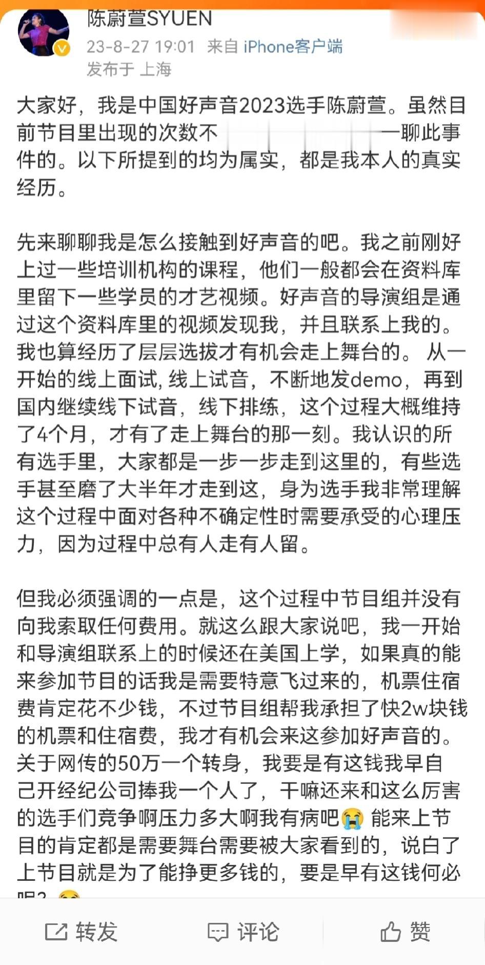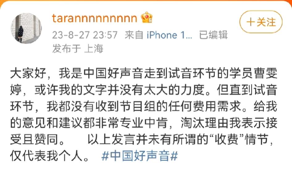 好声音,感动中国。 这几天陆续看到很多学员发的参赛过程,和谐有爱、专业严谨、奉献敬业,似乎不是一个综艺节目,甚至可以获得“感动中国”了。我想这么多当事人发声,可见有许多误会在里面,静待调查结果吧。[灵光一闪]