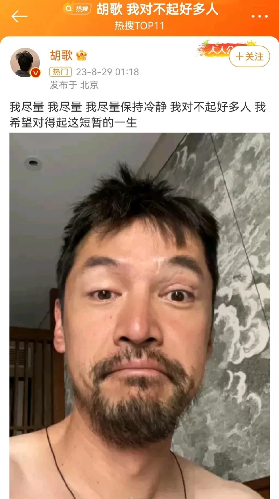胡歌,让人心疼,抑郁了吗? 他是生什么病了? 今天凌晨,胡歌不穿上衣发了张胡子拉碴的照片,配文很无助。 看了不少评论,有不少粉丝认为他不对劲,还有粉丝认为他抑郁了,可能之前的车祸事件又影响他了。 不管怎样,希望老胡保重啊!