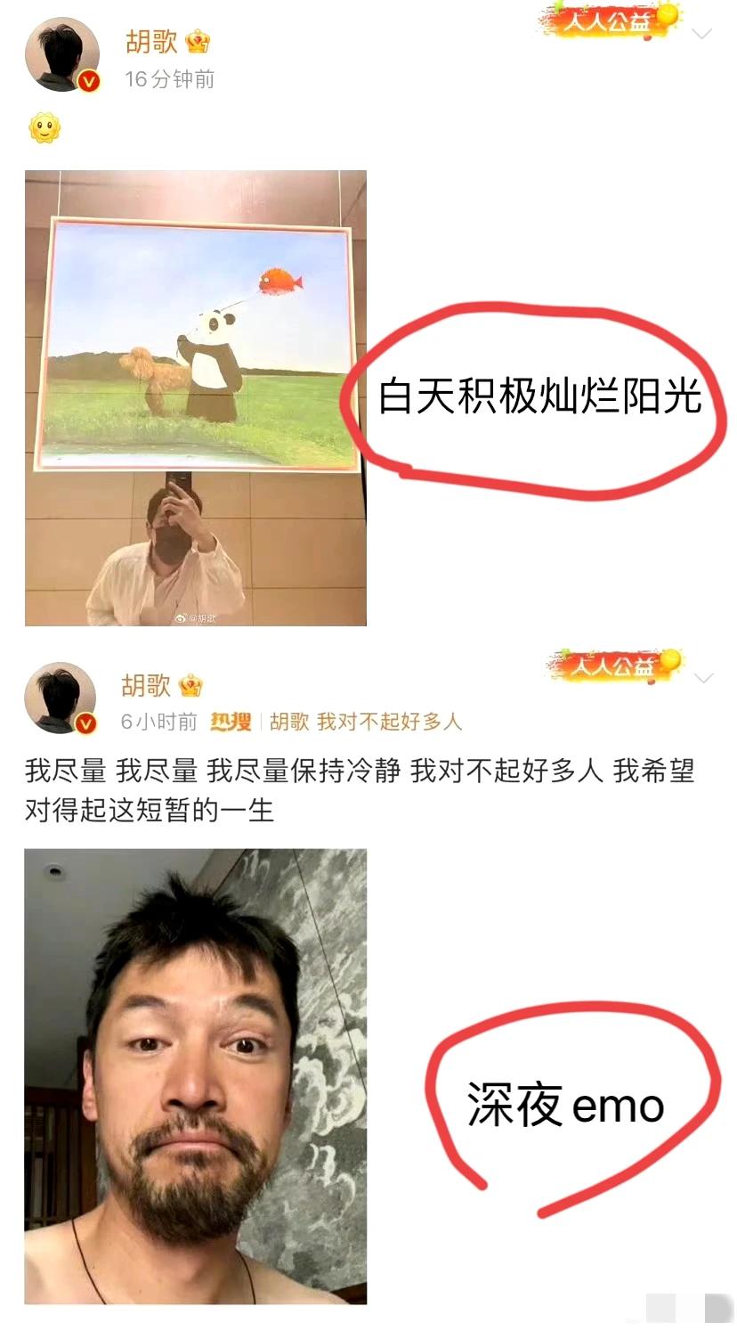 胡歌最近emo严重, 有网友猜测他说的对不起的人只有一个, 那就是是薛佳凝。