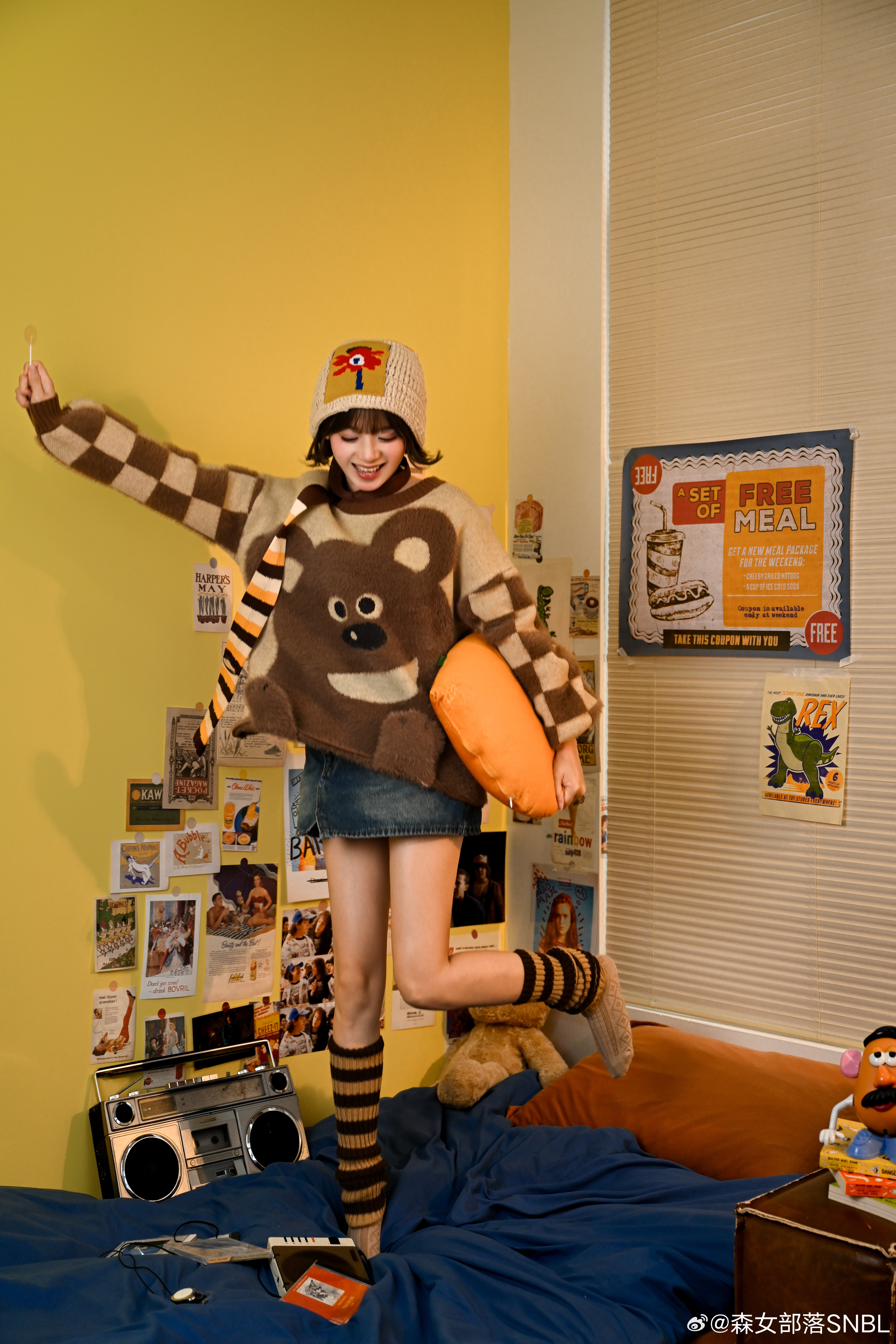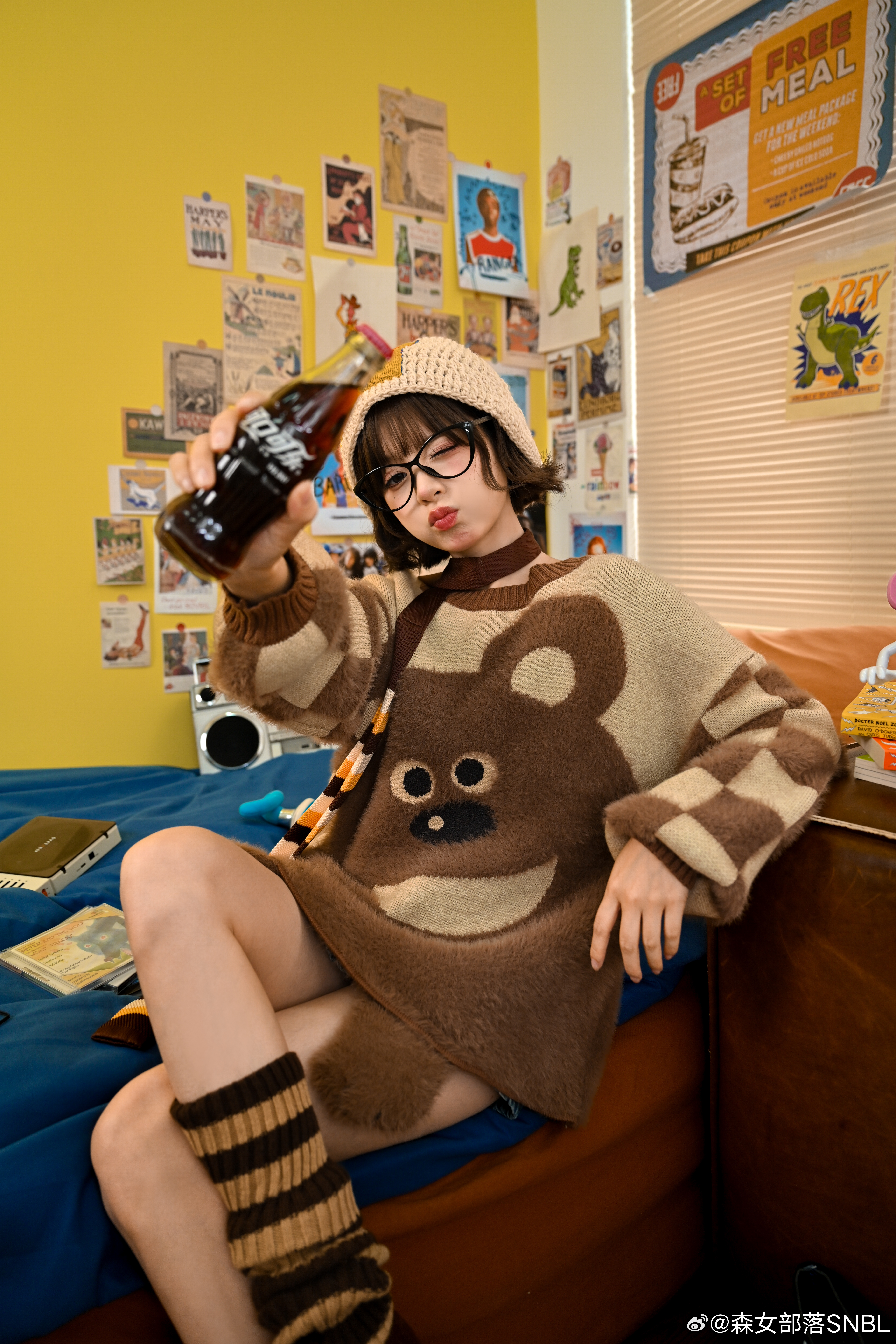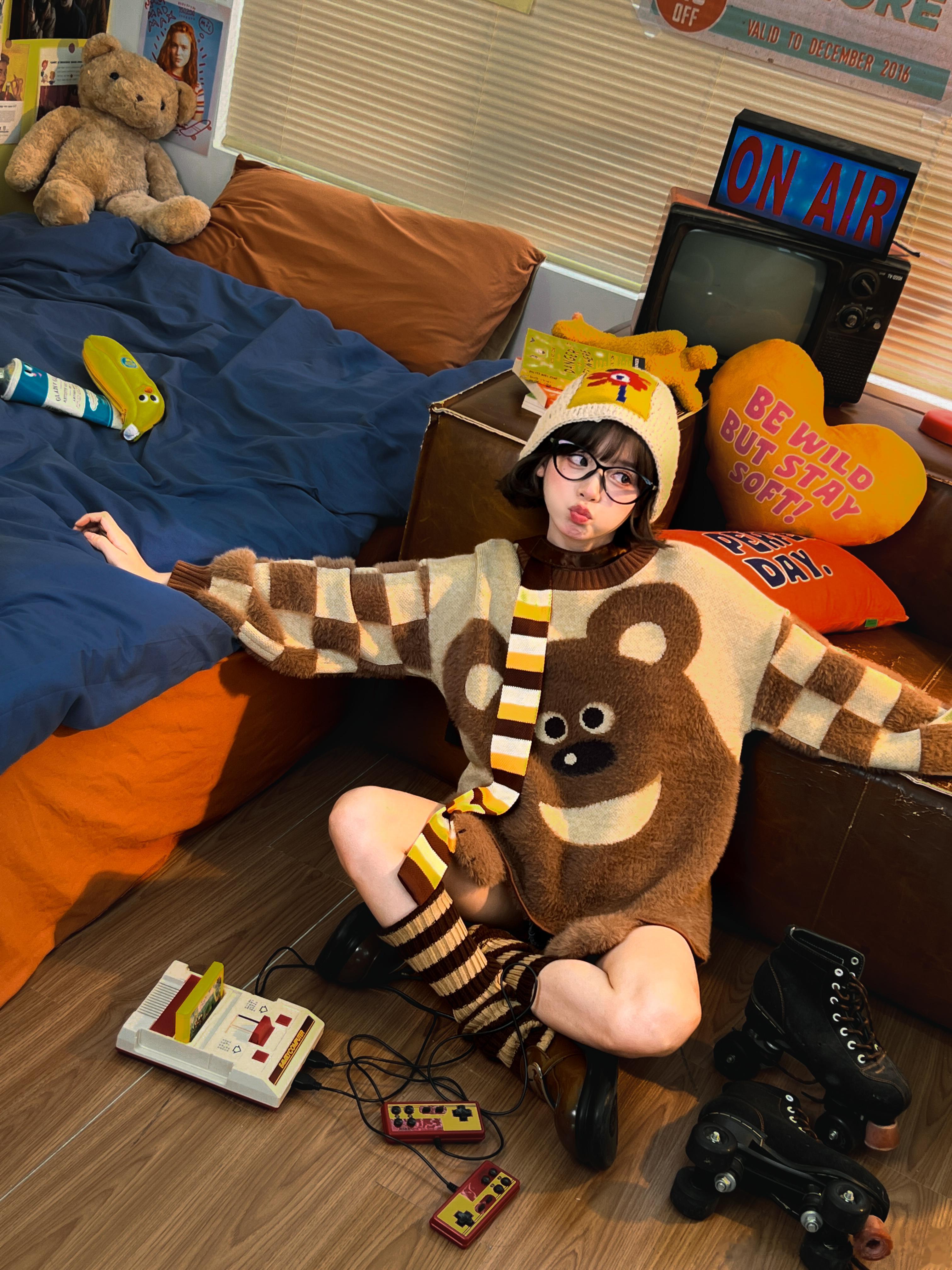 棋盘格纹and小熊元素!好适合秋冬!巨可爱!