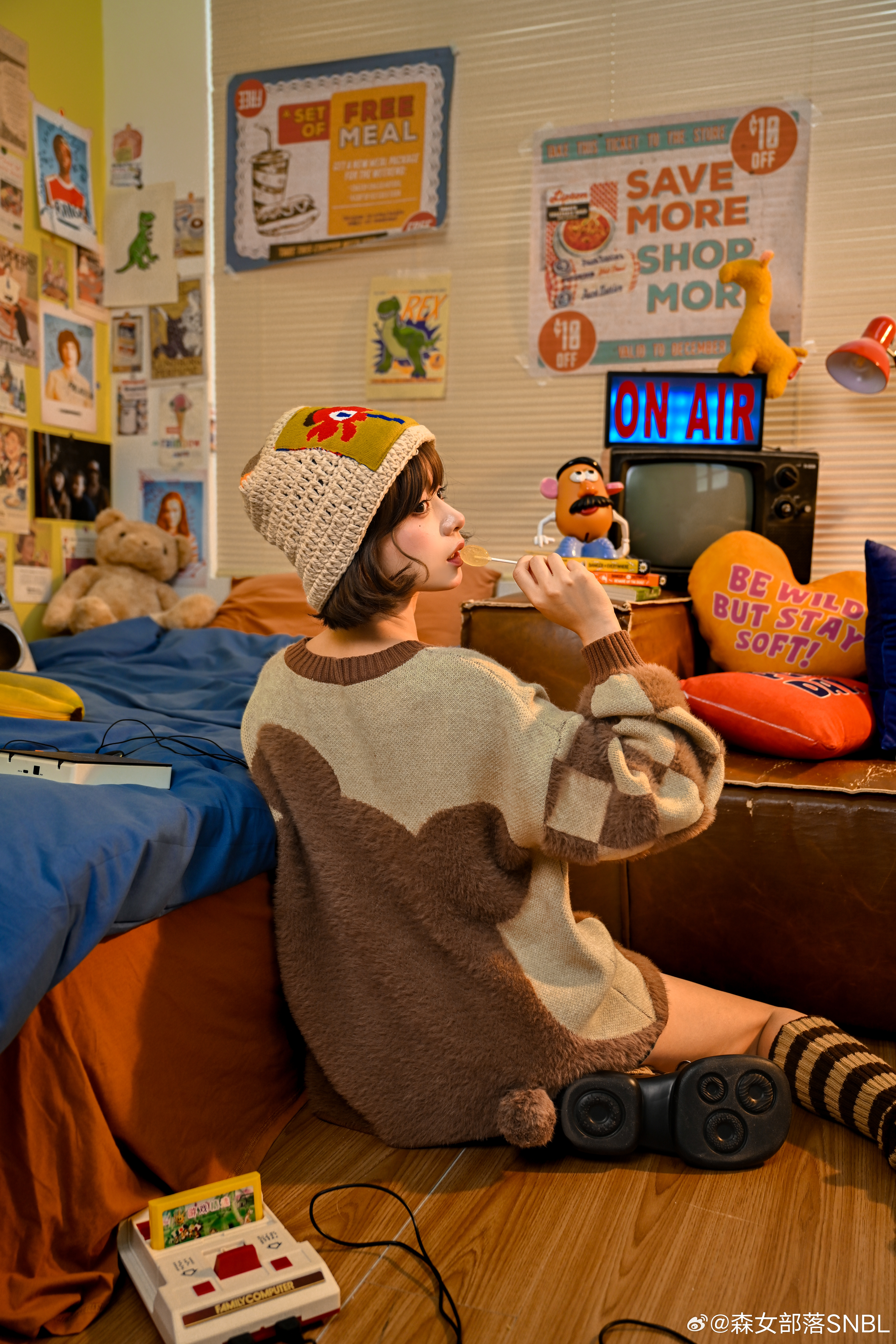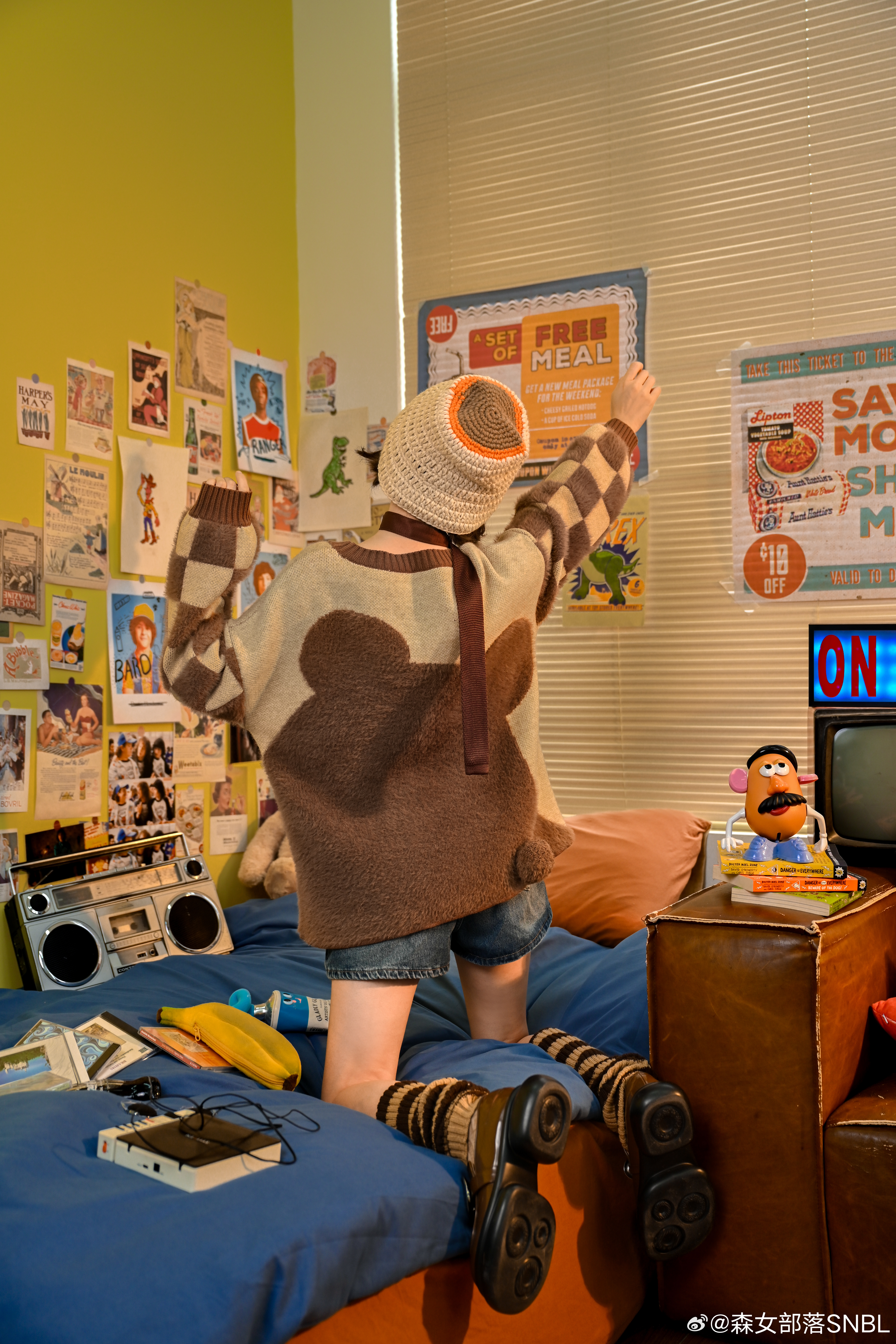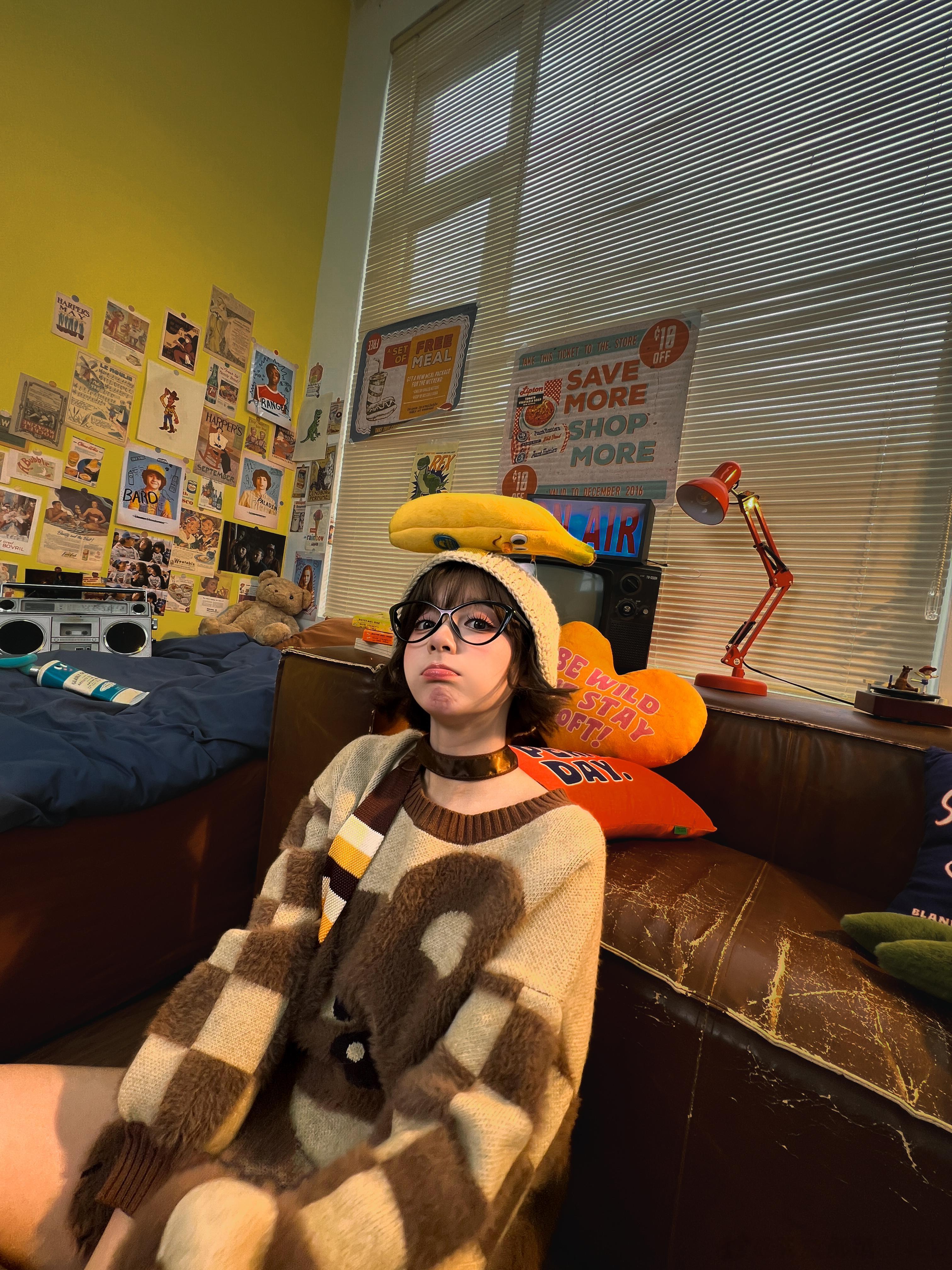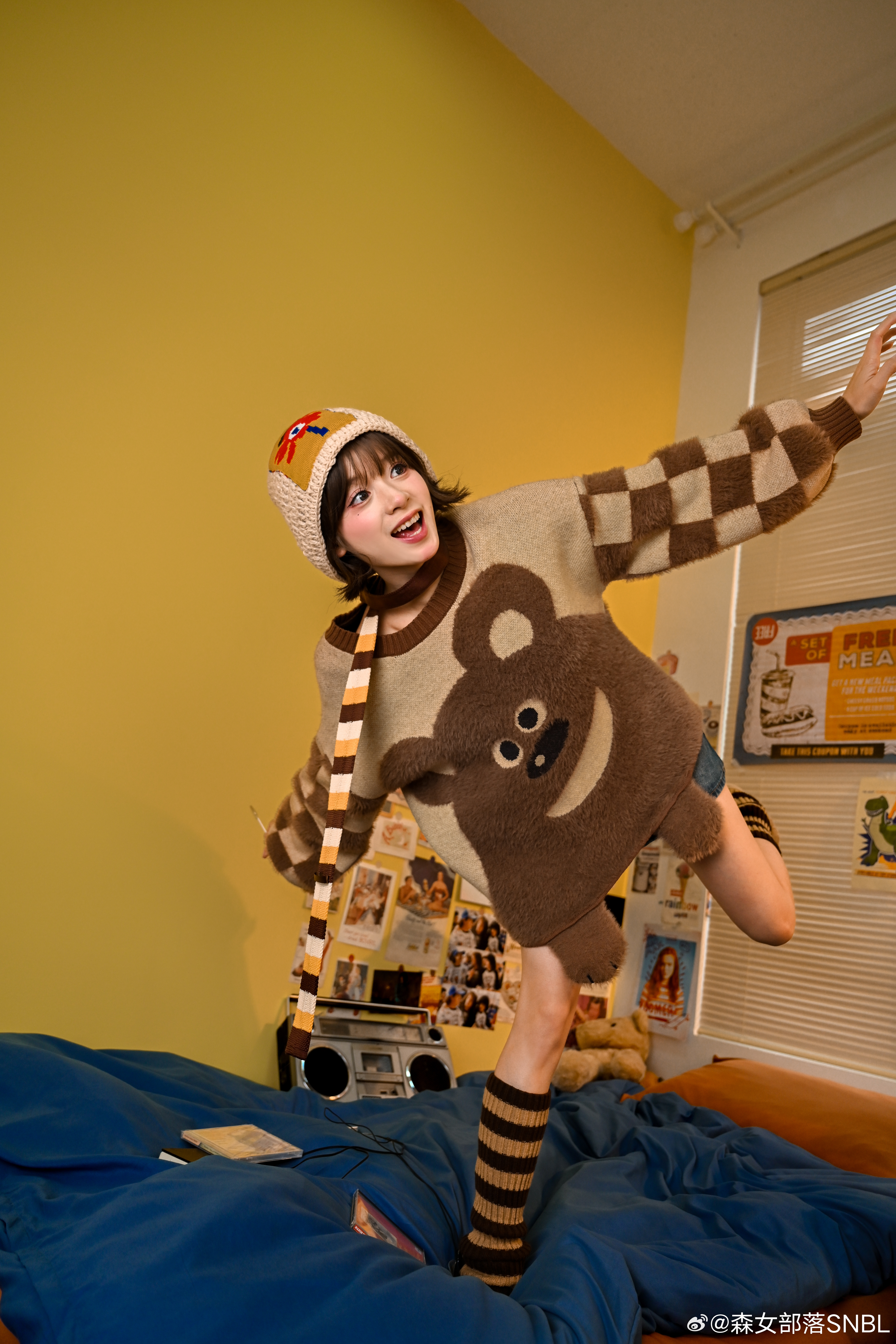 棋盘格纹and小熊元素!好适合秋冬!巨可爱!