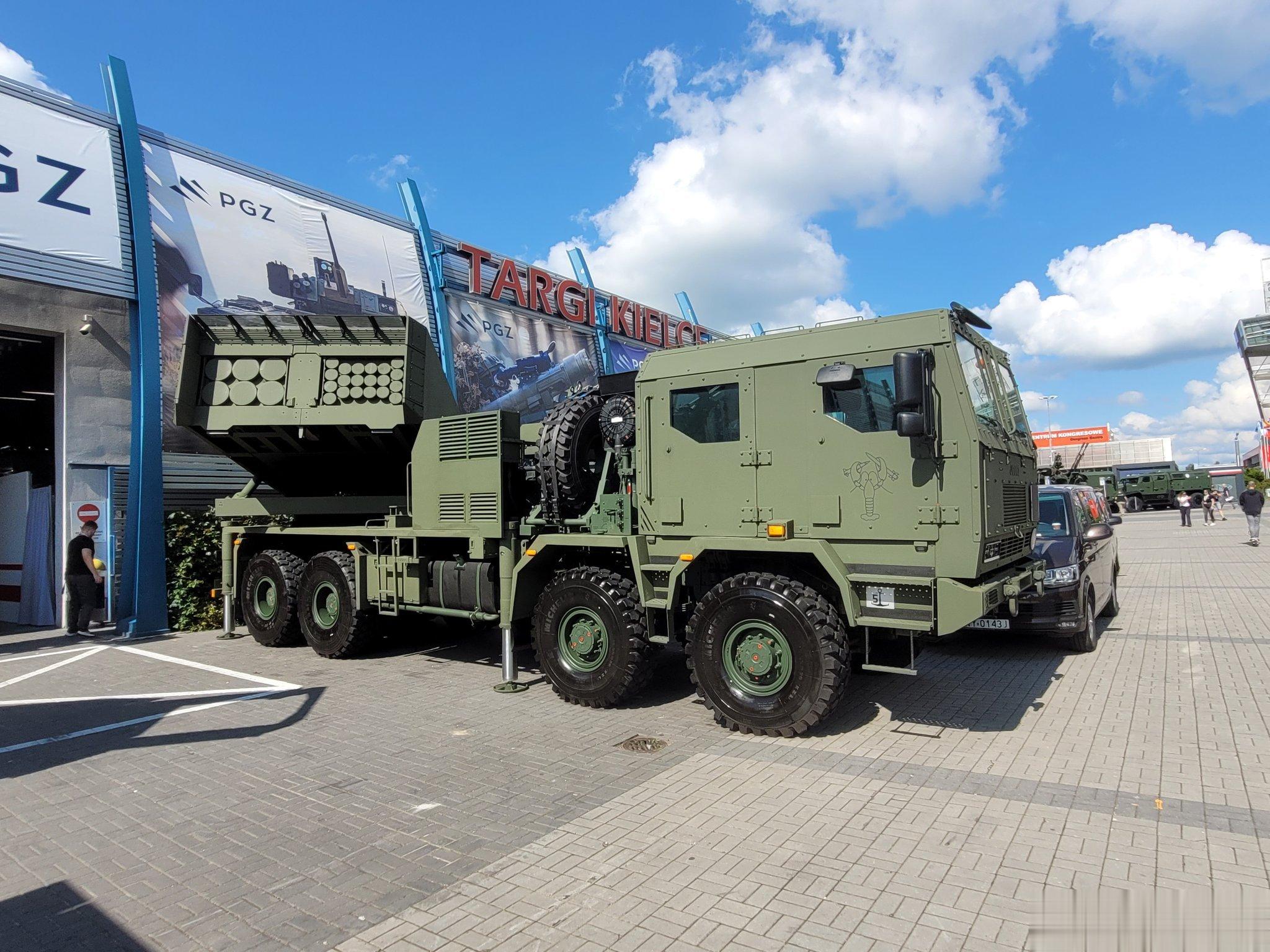 【图1】在2023年波兰凯尔采安防及防卫设备展览会(MSPO2023),“波兰军备集团-多管火箭炮”(PGZ-WRR)联盟展出的两款火箭炮