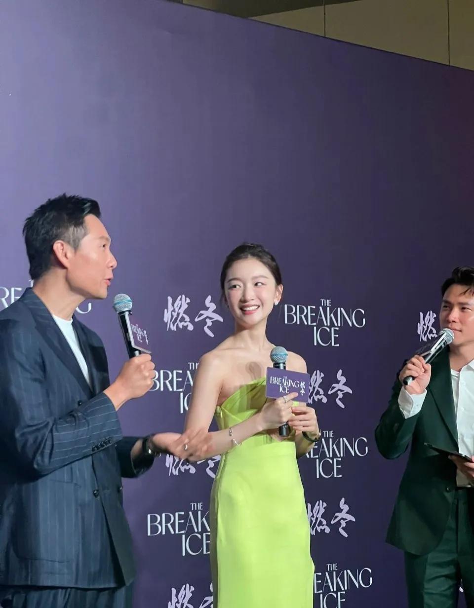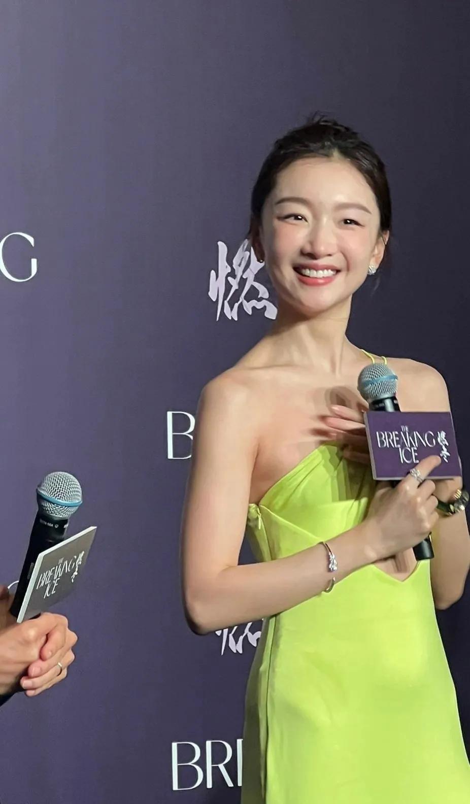 周冬雨新加坡路演生图, 确实漂亮了好多, 就是这礼服选的不好。 她五官算不上艳,