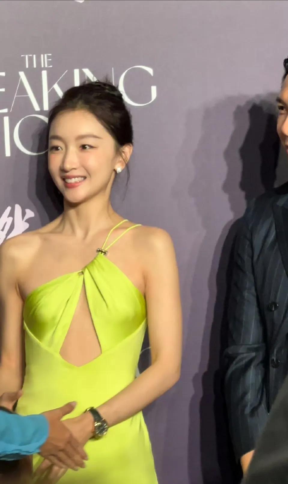周冬雨新加坡路演生图, 确实漂亮了好多, 就是这礼服选的不好。 她五官算不上艳,但她的小脸是真的蛮上相,而且骨相也确实好,皮肤紧致,真正的电影脸。