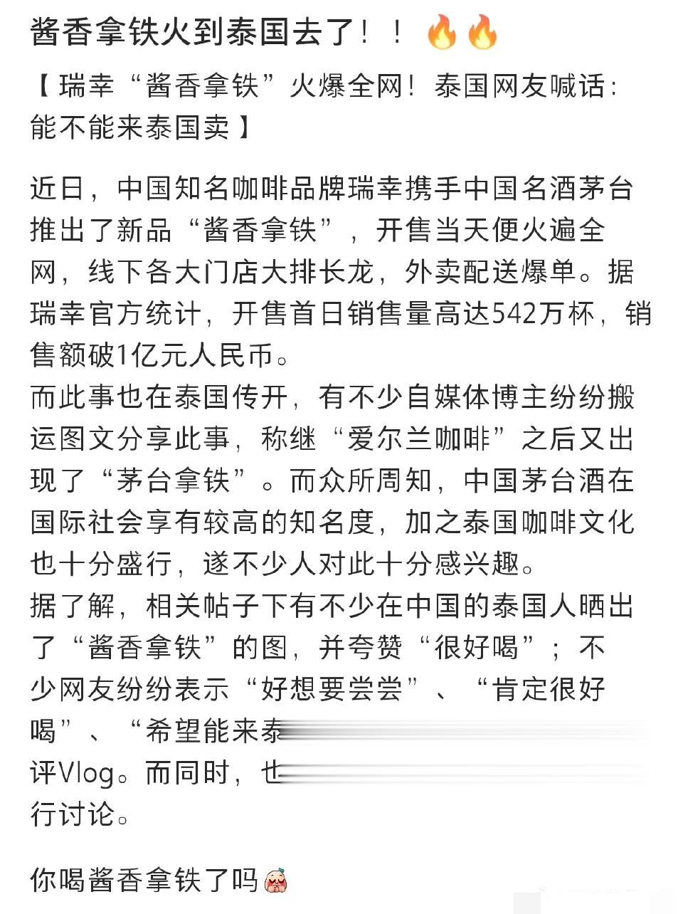 酱香拿铁火到泰国, 评论区笑不活了, 果然网友都是一样的。