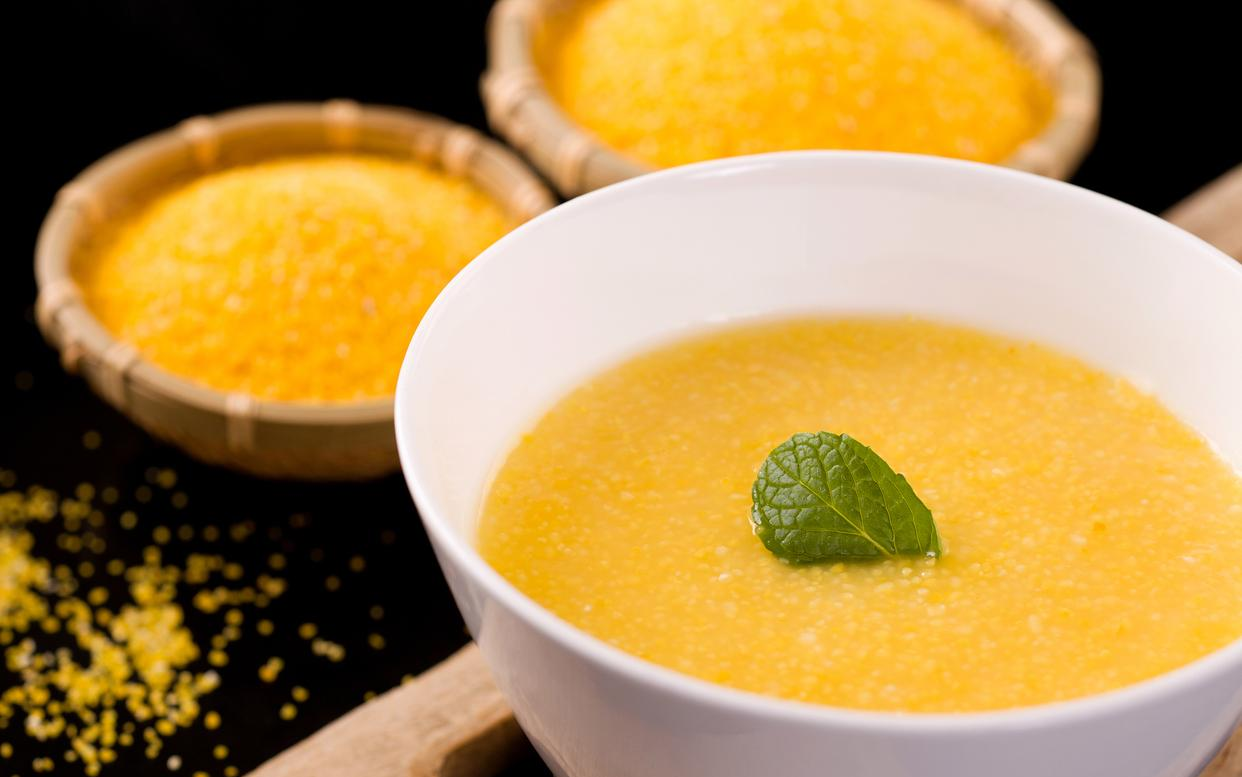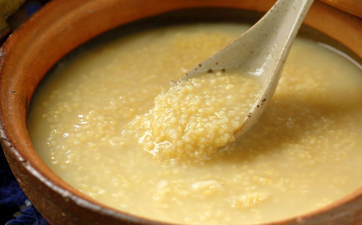 颗粒饱满的小米带着浅黄的光泽,淘洗时水面浮起一层细密的米油,这是锁住香气的关键。“熬粥得有耐心,火不能急,米要泡透。” 古火肴师傅盯着锅里的粥。小米在沸水中慢慢舒展,从紧实的颗粒渐渐变得柔软,汤汁也从清澈转为温润的乳黄色。