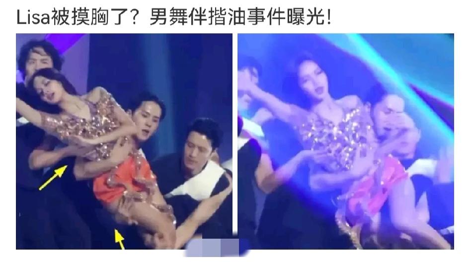 Lisa疑似被袭胸。 演唱会现场,Lisa被男舞伴包围, 众人配合舞蹈将她举高高。 人多手杂的瞬间,一名男舞伴的手突兀地出现在她胸前,看这个角度并不像搭把手扶她的样子,到底是什么状况? 这种唱跳的瞬间,如果没有被拍下的话那就没人会注意到,就算是本人也会认为是无意中触碰吧?所以女星光鲜亮丽的背后,也是有很多辛苦的汗水。 #娱乐#