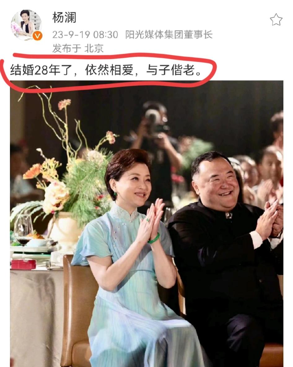 杨澜跟帅气老公秀恩爱, 评论区炸了! 今天一大早杨澜悄悄撒了一波狗粮,晒出和老公的恩爱合影,并高调宣布两人28年过去还是恩爱如初。 美好的爱情,真挚的情感,让人羡慕不已,但是评论区有点酸,可见很多人嫉妒杨澜姐姐[呲牙] 看了一个比较有意思的评论:28年来,你一直这么优雅,他一直这么胖。 其实很多人想多了,所谓婚姻,如人饮水冷暖自知,外人很难评,28年时光的婚姻已经说明了很多问题。此外,杨澜也是为自己辟谣,说明她和老公恩爱着呢! 所以,祝福!就是有个小疑问,那个绿色的镯子好好看,有人识货吗?