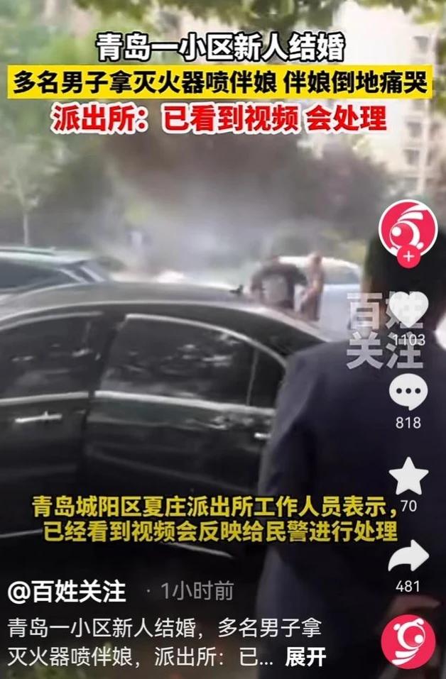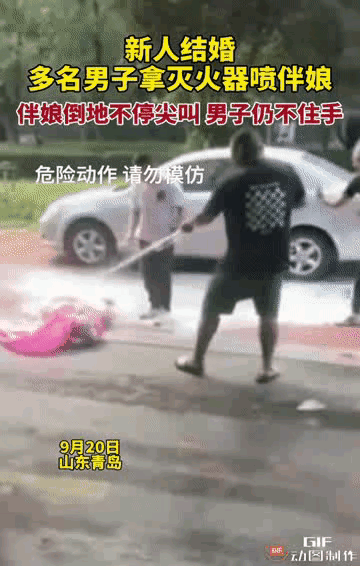 这画面看着太下头了! 年轻的伴娘哇哇尖叫, 但是几名婚闹的男子依然拿着灭火器对着姑娘喷! 这样的婚闹如何收场? 现在农村里面婚闹的习俗也已经逐渐没有了,没想到在这个美丽的城市,还有这么离谱的婚闹! 这种“热闹”的意义在哪里?是为了取乐还是侮辱人!! 支持报警,支持严肃处理! 气死了!