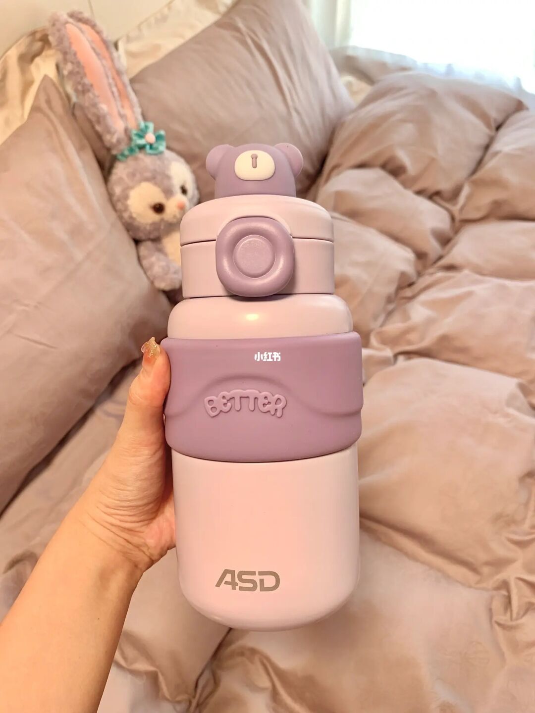Hello大家~ 💜今日份榻榻米小卧室是温柔紫色 软fufu的香芋色,淡雅又迷人 . 💜新入手了爱仕达紫色的萌熊杯🐻 24小时保温,可以用来喝热水、冰咖啡 奶奶的紫色太好看啦[偷笑R] 杯盖上的小熊少女心满满滴 还是男神任嘉伦同款哦[哇R] 316L不锈钢内胆可以安心用 有吸管口和直饮口喝水很方便呀 用力摇晃也不会漏哦[赞R] 方便携带,可背可提一杯两用 好喜欢带它出门呀,妥妥的拍照神器[派对R] . 💜总是喜欢给自己的生活来点仪式感 你未必光芒万丈,但始终温柔有光~