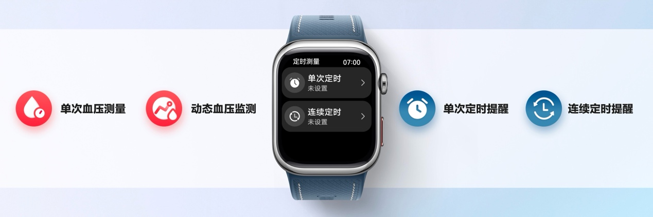 当然,比颜值更值得关注的是其功能的再次升级,全新配色的华为WATCH D2重磅新增了“定时测量功能”, 让用户可以根据自身需求设置单次定时提醒或连续定时提醒,让血压监测从"被动测量"走向"主动管理",极大地丰富了用户的血压管理体验,用户可以根据自己的时间安排来进行设置单次定时提醒或连续定时提醒,让手表在特定时间点自动完成血压测量,这个功能的加入其实方便更多的用户。