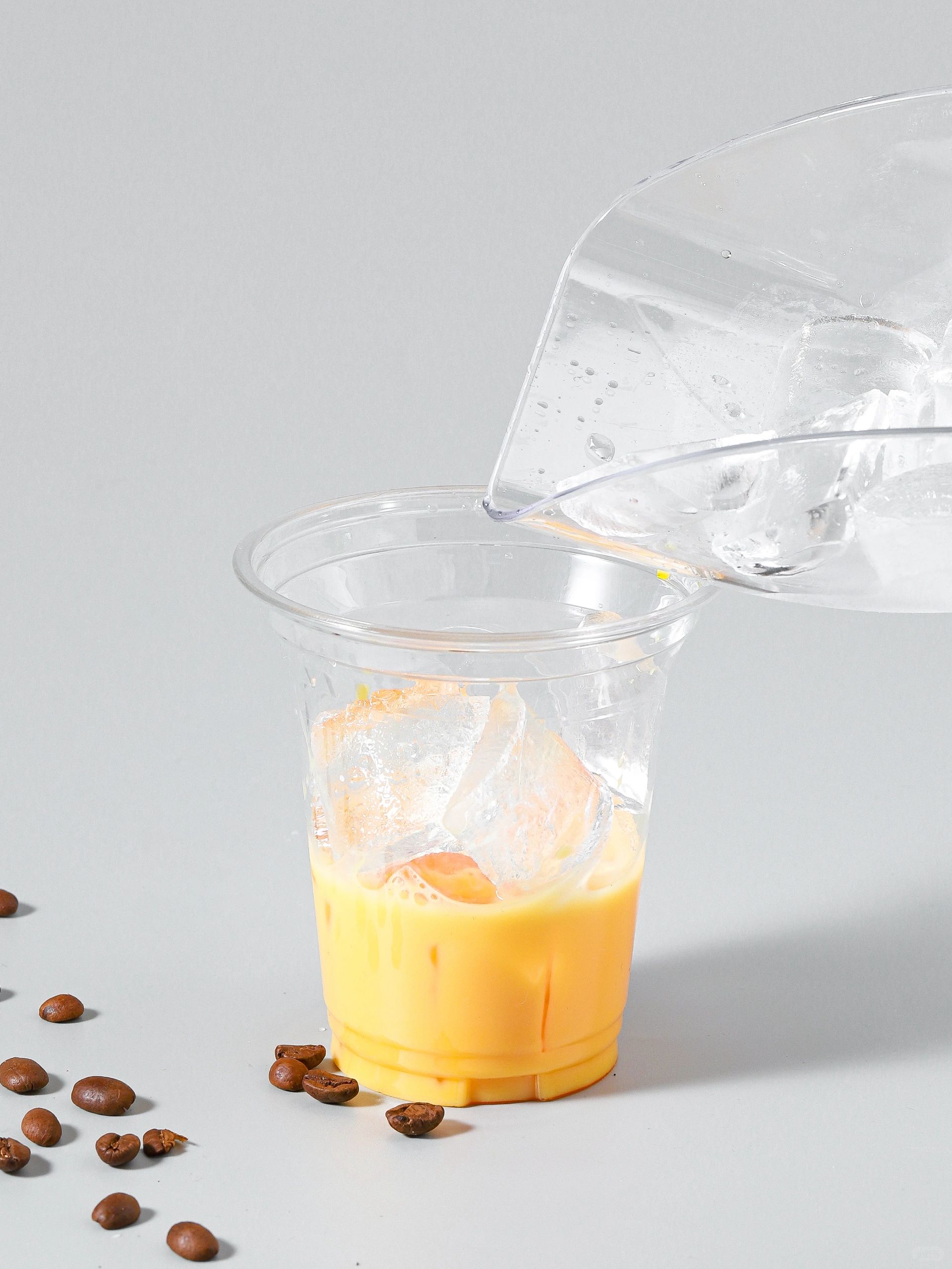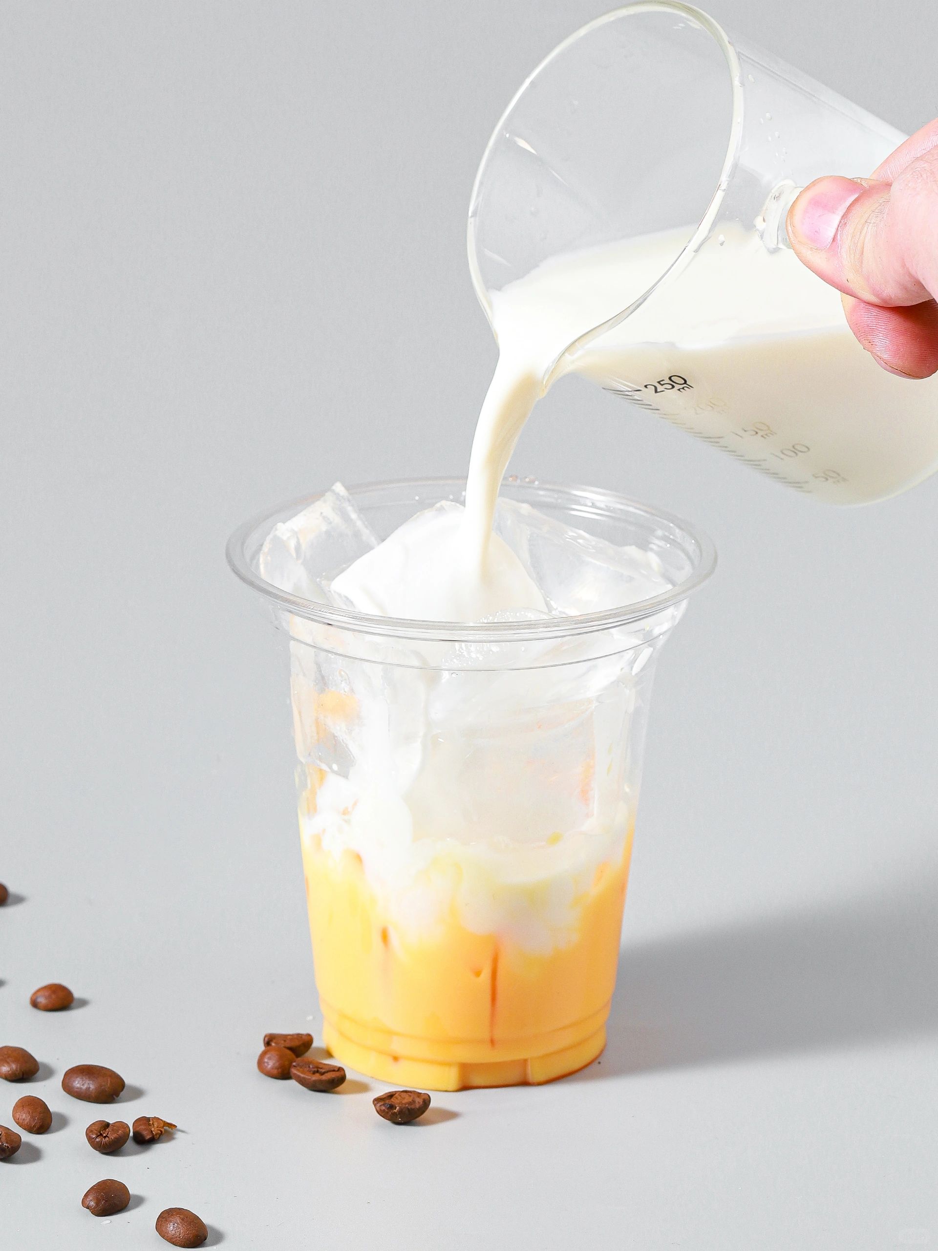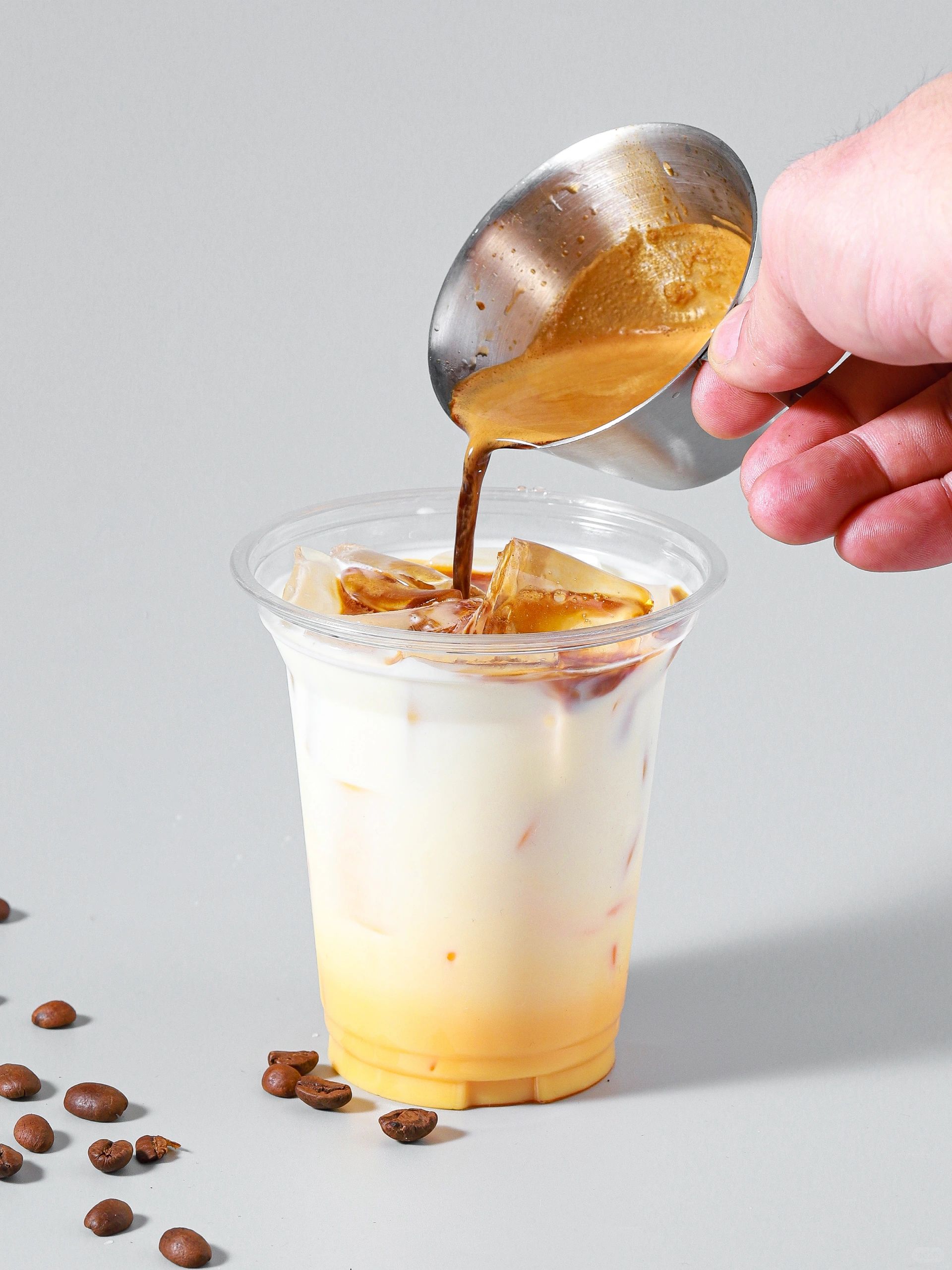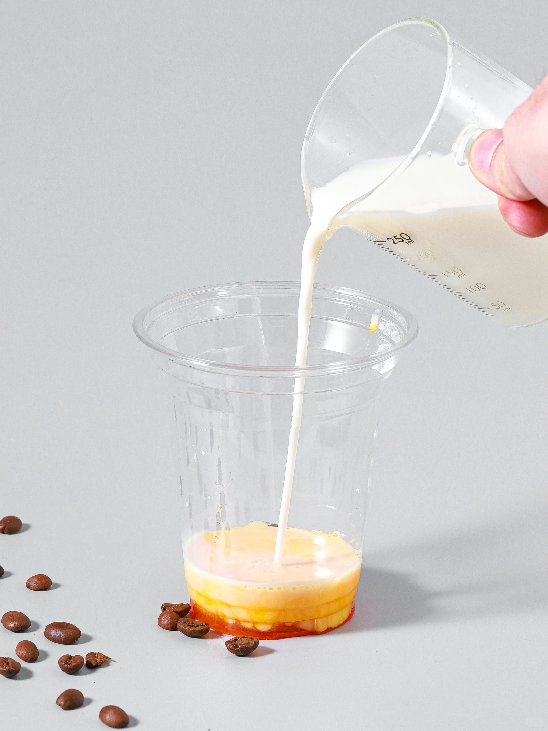 中秋佳节月饼少不了 也少不了咸蛋黄拿铁 浓郁咸蛋黄香搭配咖啡 真的太绝绝子了 冲起来 绝对不会踩雷的… 咸蛋黄拿铁 400ml 浓缩咖啡液 36g 全脂牛奶 150g 咖啡奶 20g 咸蛋黄糖浆 15g 冰块 150g 操作步骤: [一R]出品杯加入咸蛋黄、少许牛奶 搅拌均匀 [二R]倒入冰块后 倒入剩下的牛奶进行分层 [三R]最后倒入浓缩咖啡液即可