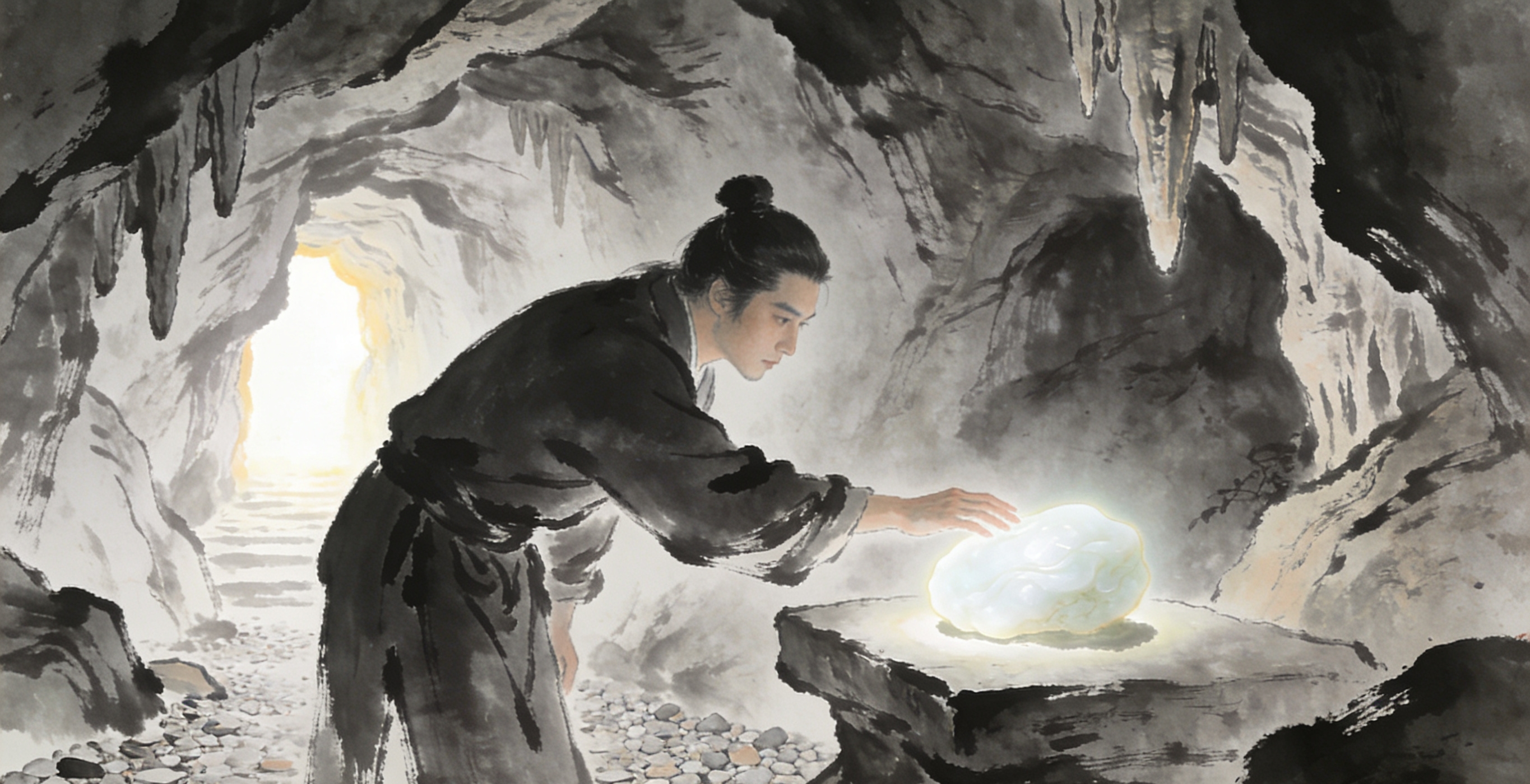 秦逸拜谢老翁,按照指引,深入山中。谷中景色奇异,花草皆散发微光,秦逸四处寻觅,终于在一处山洞中发现了一块温润如玉、散发五彩光芒的石头,正是千年灵玉。他满心欢喜,小心翼翼地将灵玉取出。