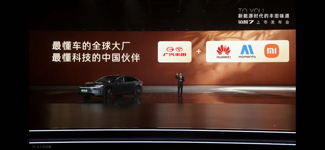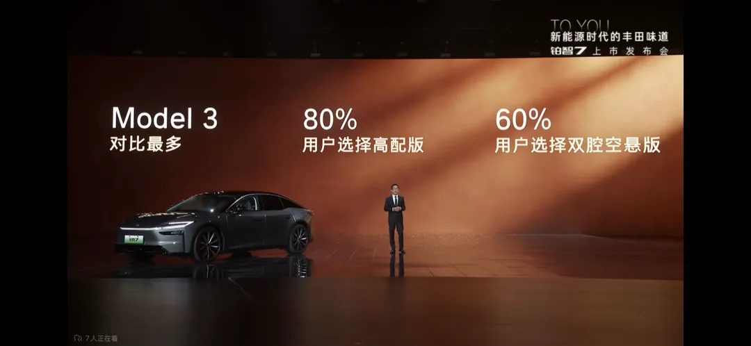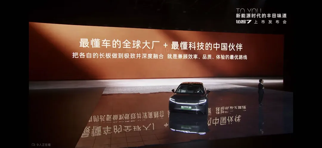 在订单数据上,昨天的发布会现场,广汽丰田称,铂智 7 从预售至今累计订单突破 1 万台。