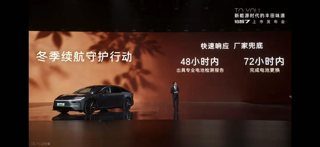 广汽丰田会安排专人跟进, 48 小时内出具专业电池检测报告,一旦确认是电池问题,72 小时内完成电池更换。
