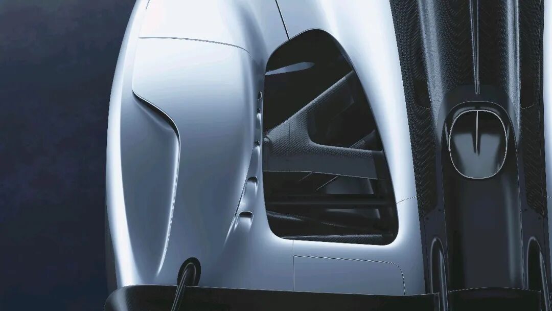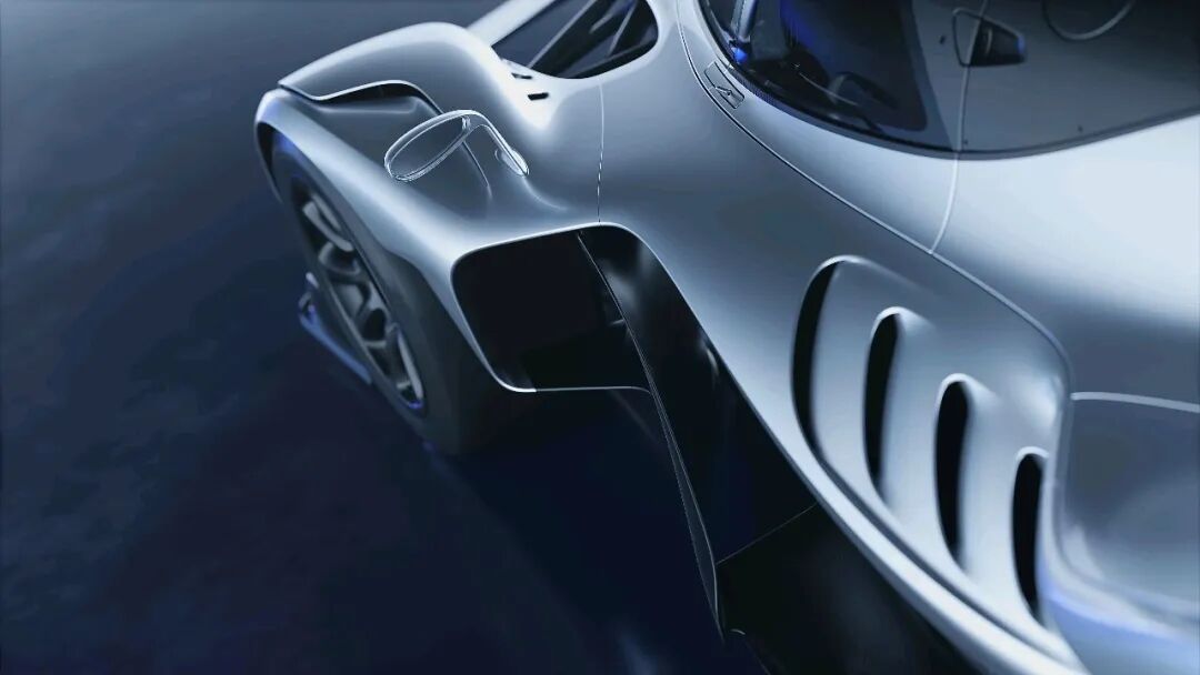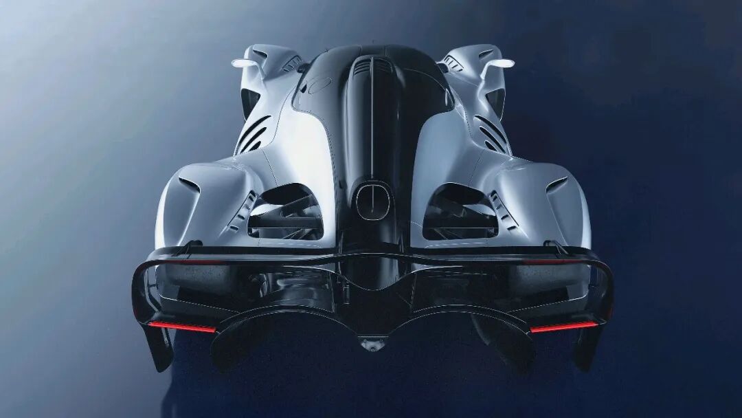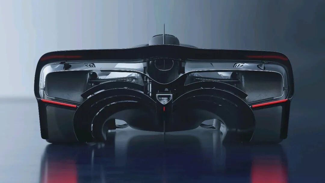 车身侧面,深邃的沟槽贯穿碳纤维壳体,将气流导向巨大的尾部冷却区域。车顶进气口吸入空气,将其直接送入中置发动机。所有这些设计的顶点是一个巨大的中央鳍片,看起来就像直接从勒芒原型车上搬下来的一样。