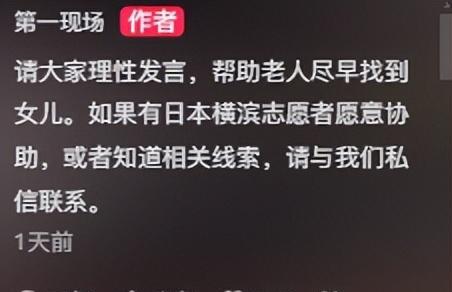 新闻记者发博后表示希望大家能够理性发言,尽早能够帮助老人找到女儿。如有日本横滨的志愿者愿意协助,或者知道她的下落以及相关线索,请与我们私信联系!