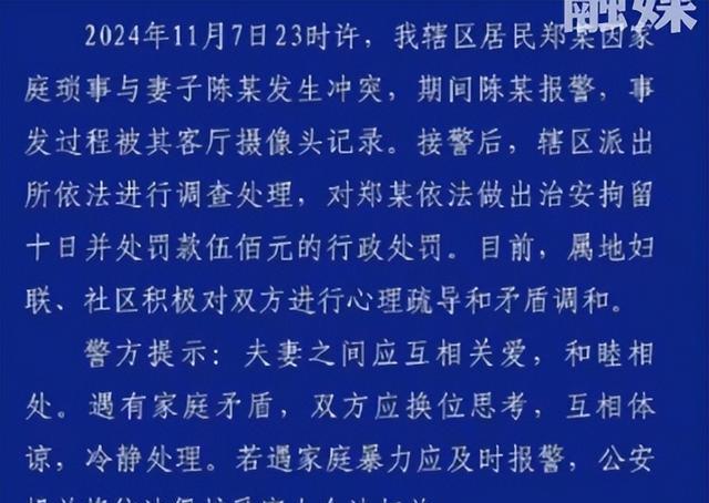 11月10日,这天晚上陈女士不知道说了什么就让丈夫暴怒,直接动手一巴掌扇到了他的脸上,女子想辩解没想到男的打的越来越劲,起身拿脚猛踹女子的头部。