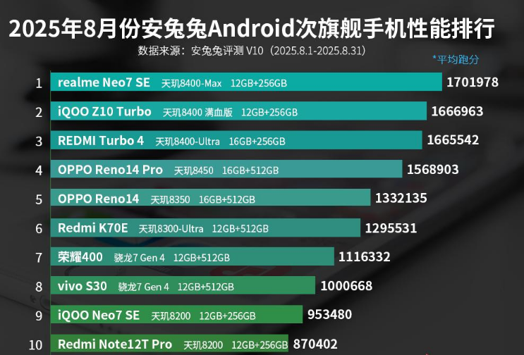 总的来看,2025年8月的安卓设备市场格局十分清晰: