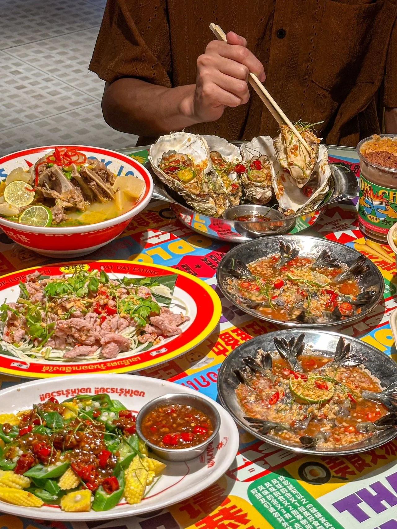 在体育西!一定要试试这家可可爱爱的泰餐! 🔥谁懂啊!!多少个夜晚都在馋这一口!!! 值得多次打卡的泰国烧烤档!🇹🇭 环境:⭐️⭐️⭐️⭐️⭐️ 出品:⭐️⭐️⭐️⭐️⭐️ 泰式乳山生蚝🦪 每颗都很肥美,鲜美多汁,配上酸酸辣辣的秘制酱料,一口一个很满足! 酸辣泰式虾生🦐 吃腻了潮汕生腌?快来试试泰式生腌吧!新鲜大虾个头很大,酸辣开胃很正宗! 半斤榴莲手捣冰🍨 足足半斤的榴莲果肉➕甜丝丝椰子冰沙,爱吃榴莲的必点!#广州头条#