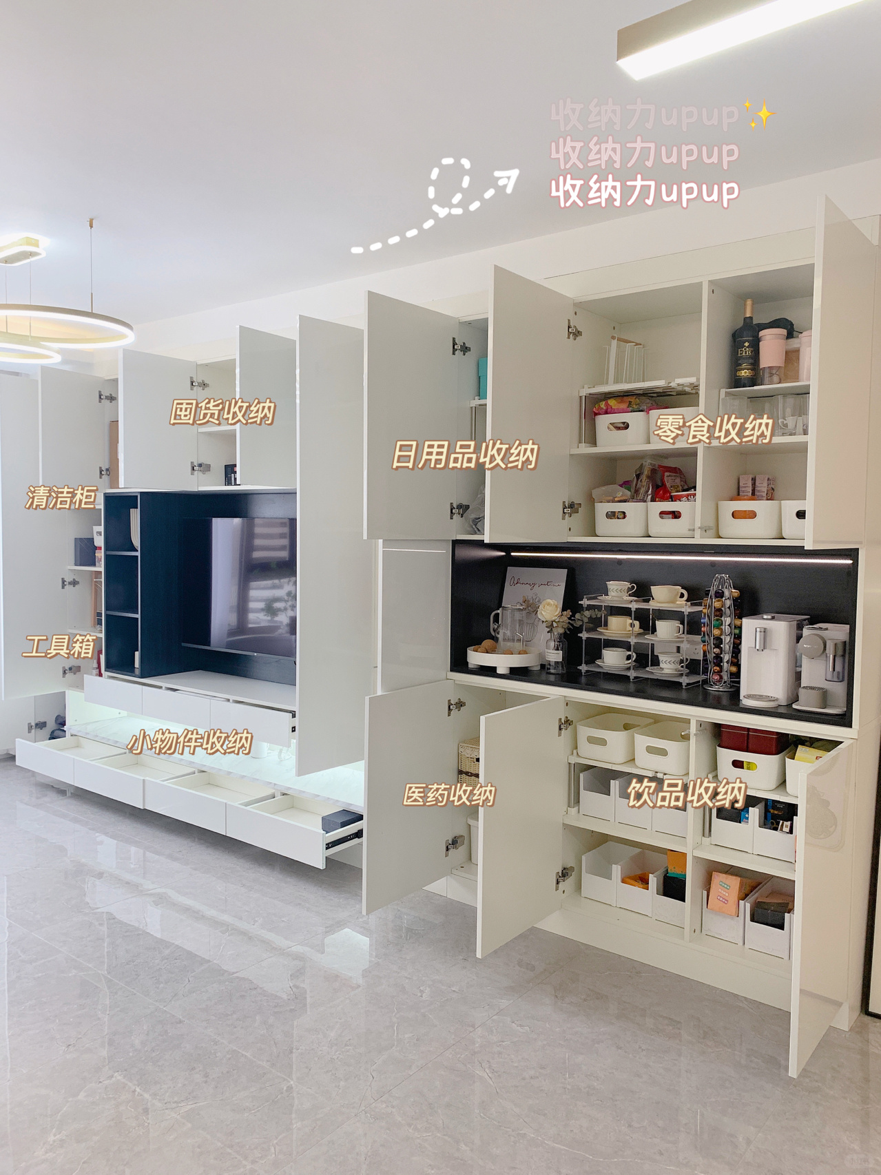 装修|客厅|电视柜|餐边柜|整面墙储物柜|电视柜墙|全屋定制|满墙电视柜